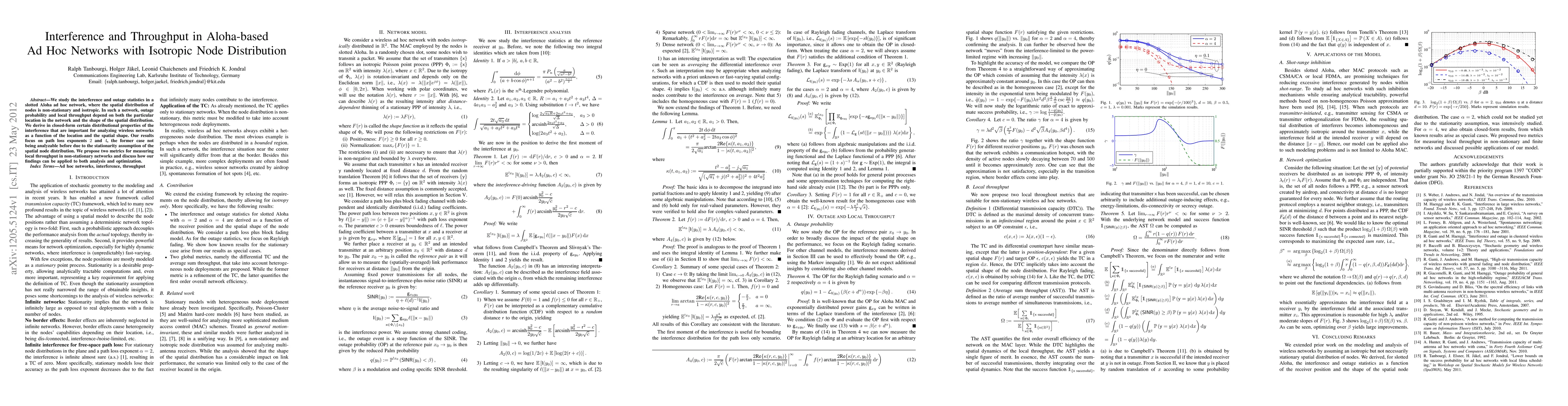 This paper analyzes interference and outage statistics in a non-stationary, isotropic slotted Aloha ad hoc network, deriving closed-form distributional properties of interference. It introduces two metrics for local throughput measurement and applies findings to network analysis and optimization.
