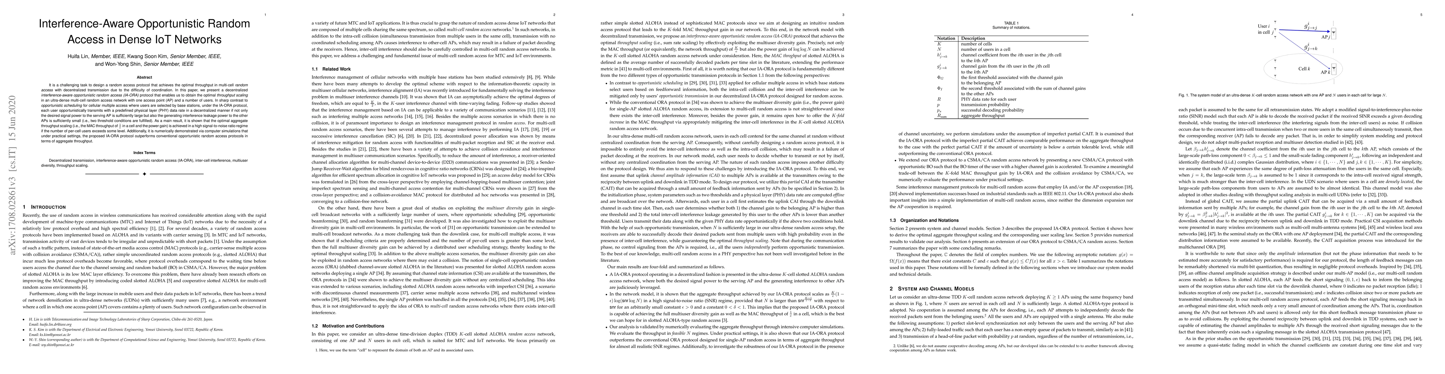 This paper introduces a decentralized interference-aware opportunistic random access (IA-ORA) protocol for dense IoT networks, achieving optimal throughput scaling by allowing users to transmit only when signal and interference thresholds are met. The proposed protocol outperforms conventional methods in aggregate throughput.