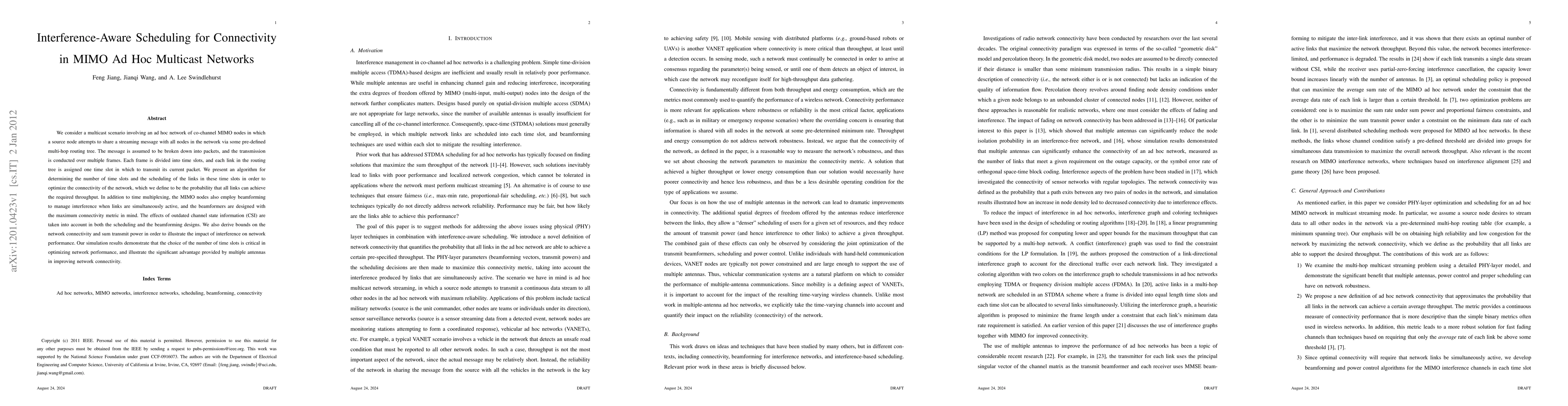 Researchers developed an algorithm to optimize connectivity in MIMO ad hoc multicast networks by balancing time multiplexing and beamforming to minimize interference. Simulation results show that the number of time slots is critical to network performance and multiple antennas significantly improve connectivity.