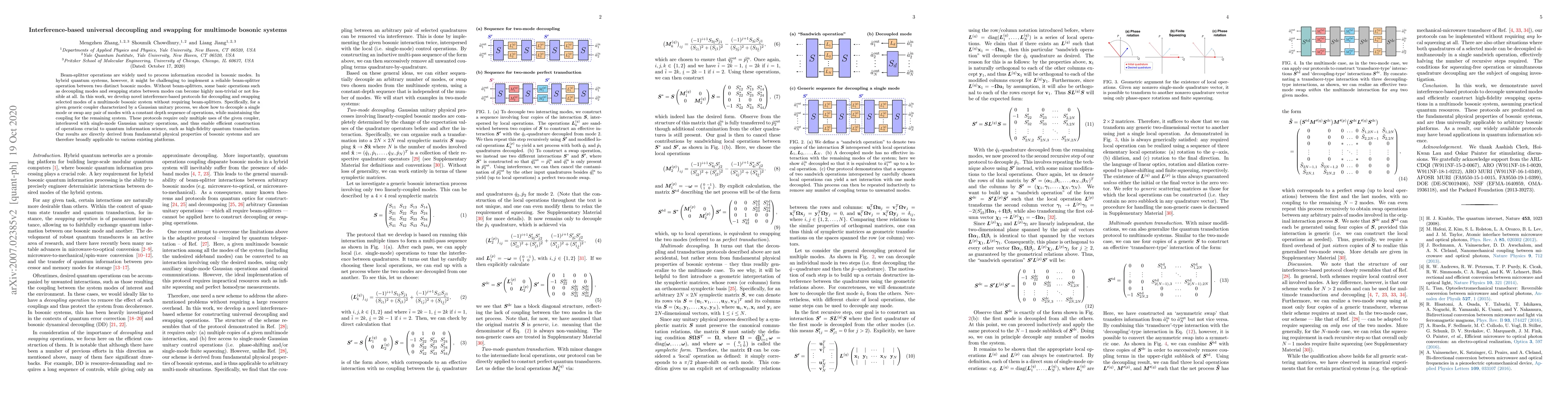 This paper presents interference-based protocols for decoupling and swapping states in multimode bosonic systems without beam-splitters, using only a given coupler and single-mode Gaussian unitary operations. These methods enable efficient quantum information processing operations crucial for quantum transduction.