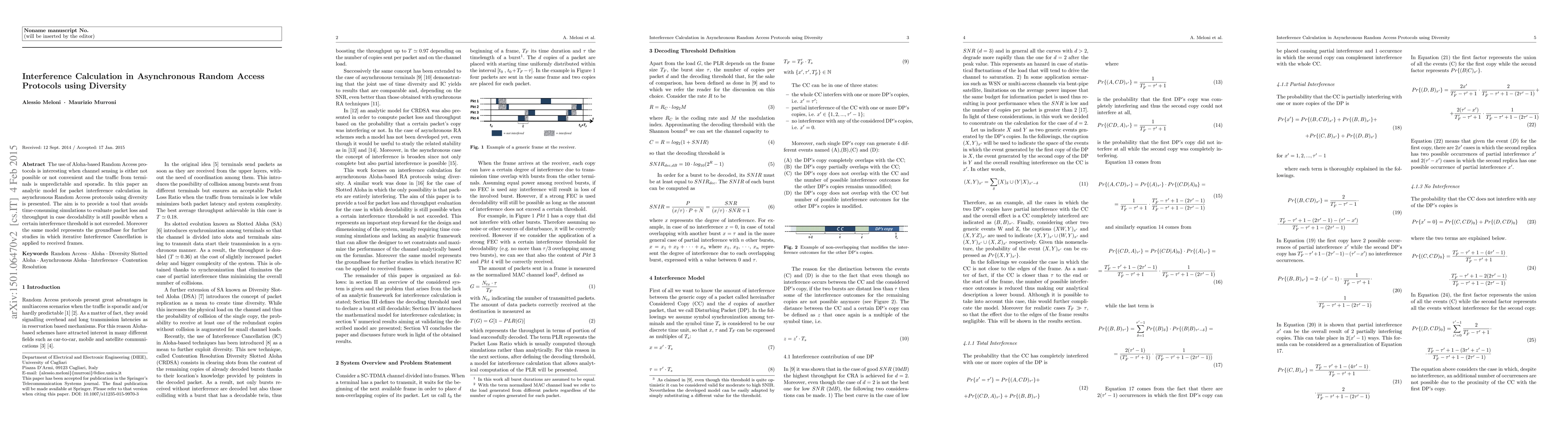 This paper presents an analytic model for calculating packet interference in asynchronous Random Access protocols using diversity, aiming to evaluate packet loss and throughput without extensive simulations. The model also lays the groundwork for future studies involving iterative interference cancellation.