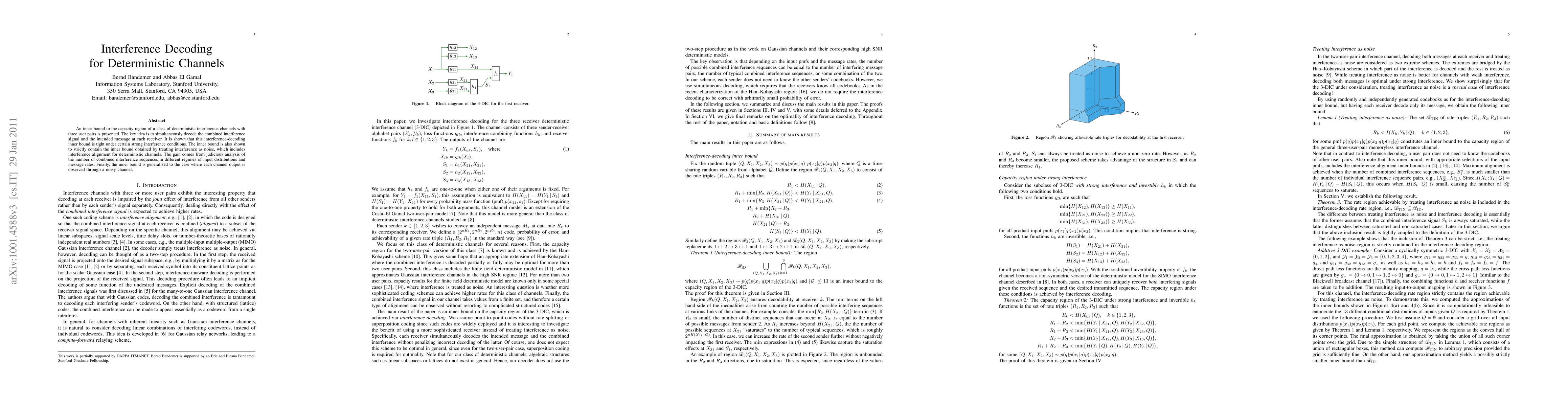 An inner bound to the capacity region of a class of deterministic interference channels with three user pairs is presented. The key idea is to simultaneously decode the combined interference signal and the intended message at each receiver. It is shown that this interference-decoding inner bound is tight under certain strong interference conditions. The inner bound is also shown to strictly contain the inner bound obtained by treating interference as noise, which includes interference alignment for deterministic channels. The gain comes from judicious analysis of the number of combined interference sequences in different regimes of input distributions and message rates. Finally, the inner bound is generalized to the case where each channel output is observed through a noisy channel.