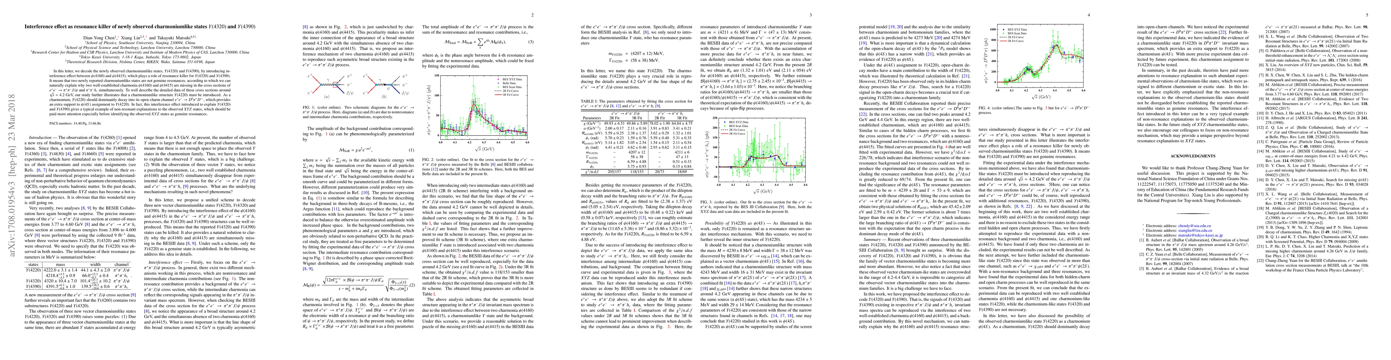 Researchers found that two newly observed charmonium-like states $Y(4320)$ and $Y(4390)$ are not genuine resonances due to interference with known charmonia $ heta$ and $ heta'$.