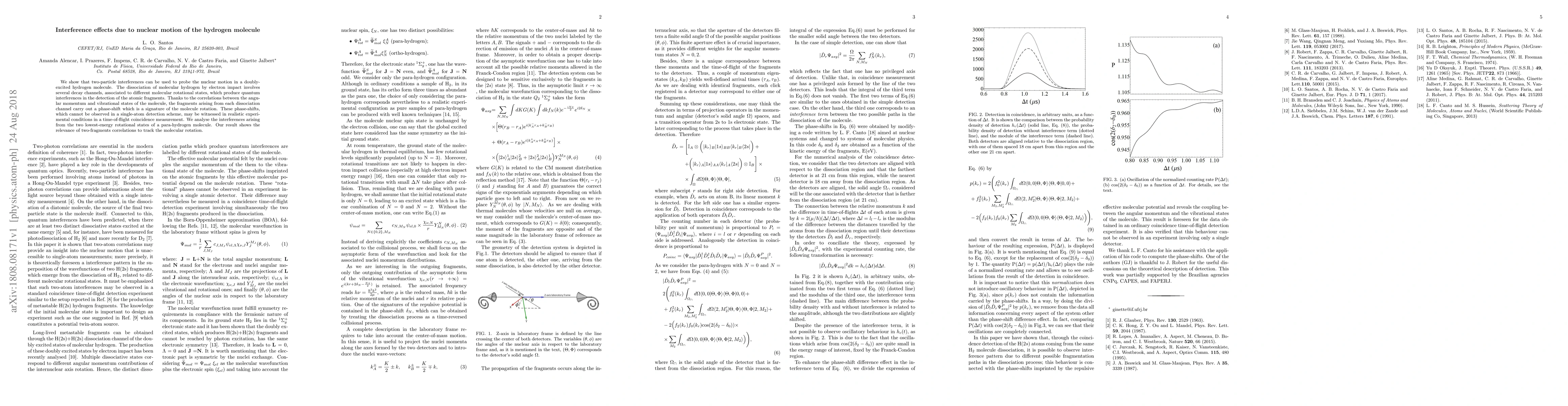 We show that two-particle interferences can be used to probe the nuclear motion in a doubly-excited hydrogen molecule. The dissociation of molecular hydrogen by electron impact involves several decay channels, associated to different molecular rotational states, which produce quantum interferences in the detection of the atomic fragments. Thanks to the correlations between the angular momentum and vibrational states of the molecule, the fragments arising from each dissociation channel carry out a phase-shift which is a signature of the molecule rotation. These phase-shifts, which cannot be observed in a single-atom detection scheme, may be witnessed in realistic experimental conditions in a time-of-flight coincidence measurement. We analyse the interferences arising from the two lowest-energy rotational states of a para-hydrogen molecule. Our result shows the relevance of two-fragments correlations to track the molecular rotation.