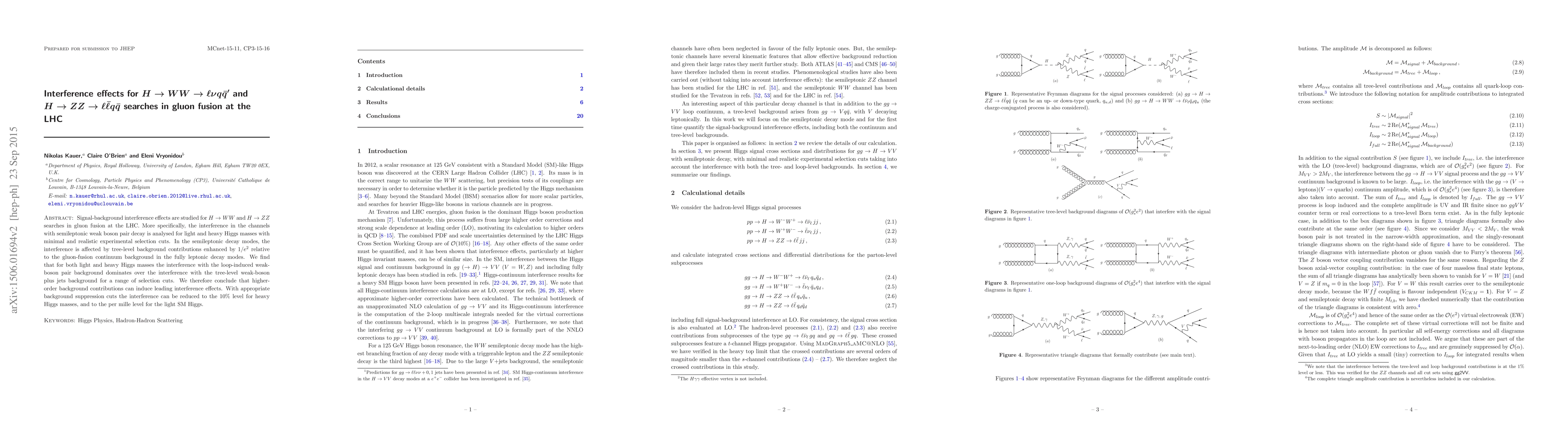 This paper investigates signal-background interference effects in Higgs boson searches via gluon fusion at the LHC, focusing on H → WW and H → ZZ decay channels. It concludes that loop-induced weak-boson pair backgrounds dominate interference, which can be reduced to manageable levels with appropriate selection cuts.