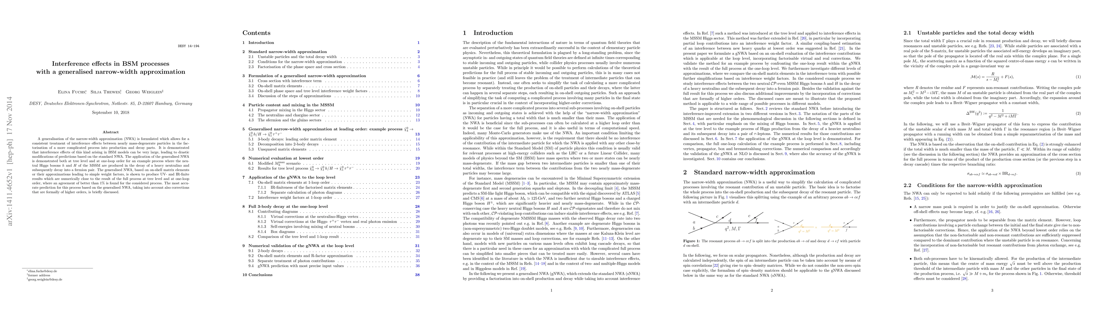 This paper proposes a generalised narrow-width approximation (NWA) to consistently treat interference effects in Beyond Standard Model (BSM) processes involving nearly mass-degenerate particles. It demonstrates significant modifications to predictions compared to the standard NWA, achieving better than 1% accuracy for processes involving neutral Higgs bosons in the Minimal Supersymmetric Standard Model.