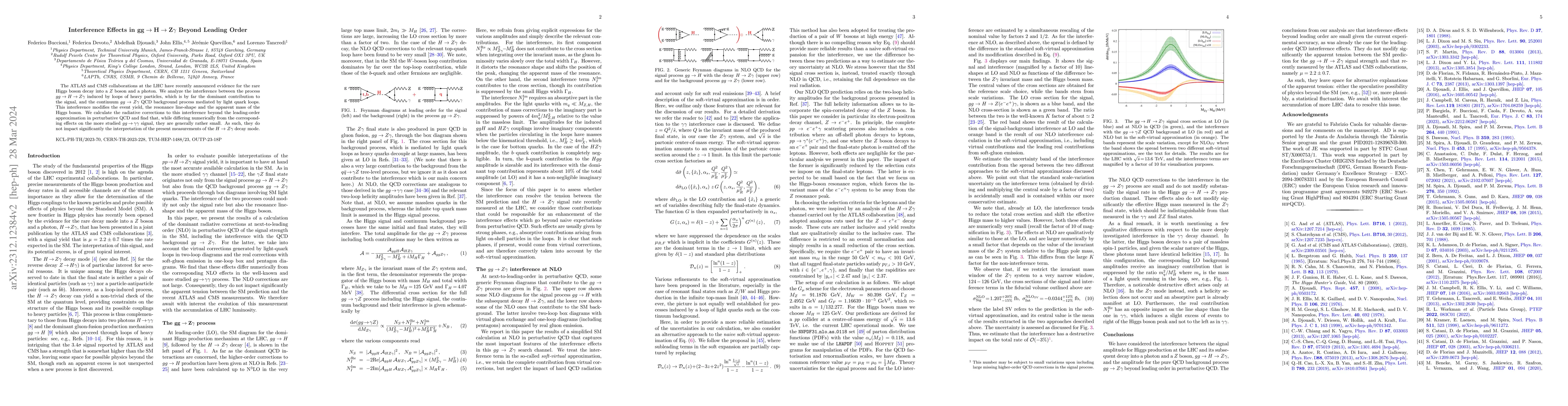 This research investigates the interference effects in the Higgs boson decay to a Z boson and a photon beyond leading order, showing that while radiative corrections modify the event yield and line-shape, they are generally small and do not significantly affect current interpretations of the $H \to Z \gamma$ decay.