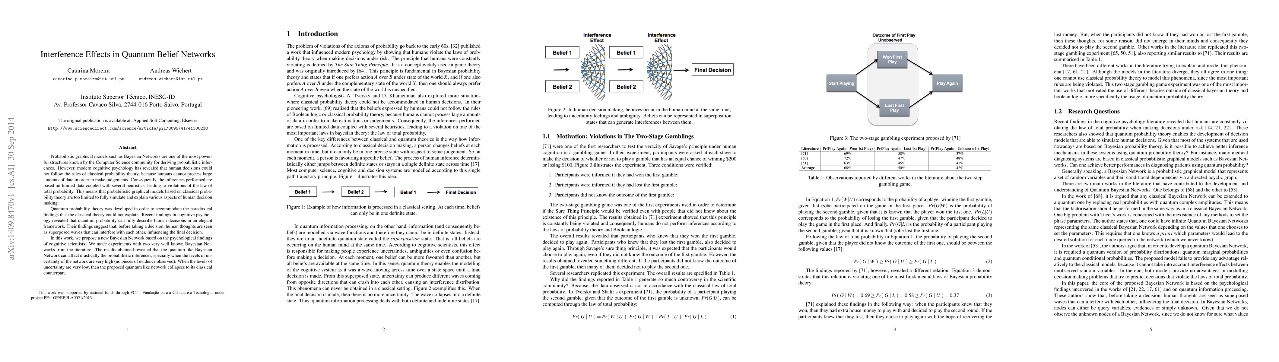 Probabilistic graphical models such as Bayesian Networks are one of the most powerful structures known by the Computer Science community for deriving probabilistic inferences. However, modern cognitive psychology has revealed that human decisions could not follow the rules of classical probability theory, because humans cannot process large amounts of data in order to make judgements. Consequently, the inferences performed are based on limited data coupled with several heuristics, leading to violations of the law of total probability. This means that probabilistic graphical models based on classical probability theory are too limited to fully simulate and explain various aspects of human decision making. Quantum probability theory was developed in order to accommodate the paradoxical findings that the classical theory could not explain. Recent findings in cognitive psychology revealed that quantum probability can fully describe human decisions in an elegant framework. Their findings suggest that, before taking a decision, human thoughts are seen as superposed waves that can interfere with each other, influencing the final decision. In this work, we propose a new Bayesian Network based on the psychological findings of cognitive scientists. We made experiments with two very well known Bayesian Networks from the literature. The results obtained revealed that the quantum like Bayesian Network can affect drastically the probabilistic inferences, specially when the levels of uncertainty of the network are very high (no pieces of evidence observed). When the levels of uncertainty are very low, then the proposed quantum like network collapses to its classical counterpart.
