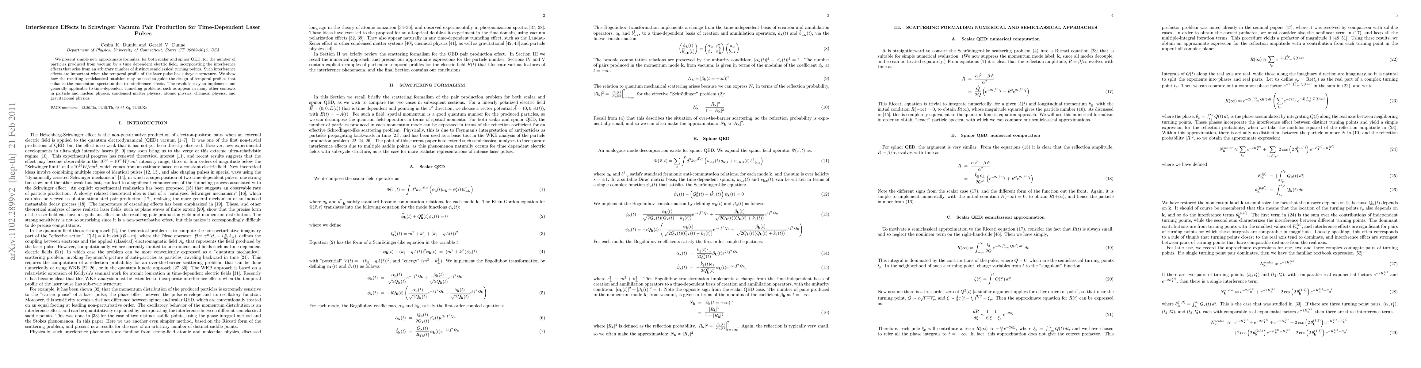 Researchers developed new formulas to calculate particle production from vacuum in response to time-dependent laser pulses, taking into account interference effects that occur at multiple turning points.