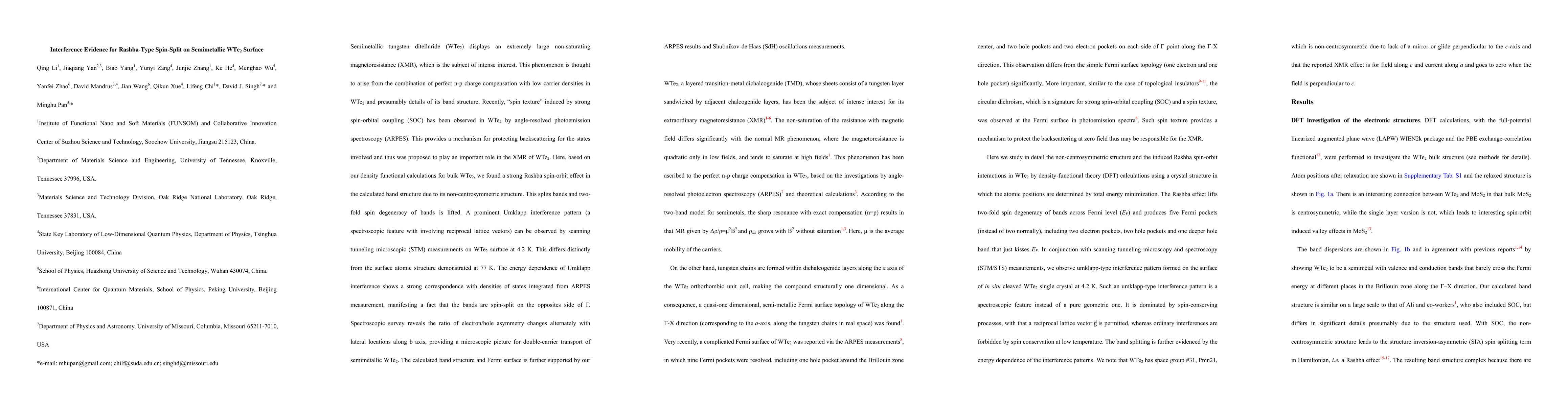 Researchers found a strong Rashba spin-orbit effect in WTe2's band structure, causing bands to split and affecting its non-saturating magnetoresistance.