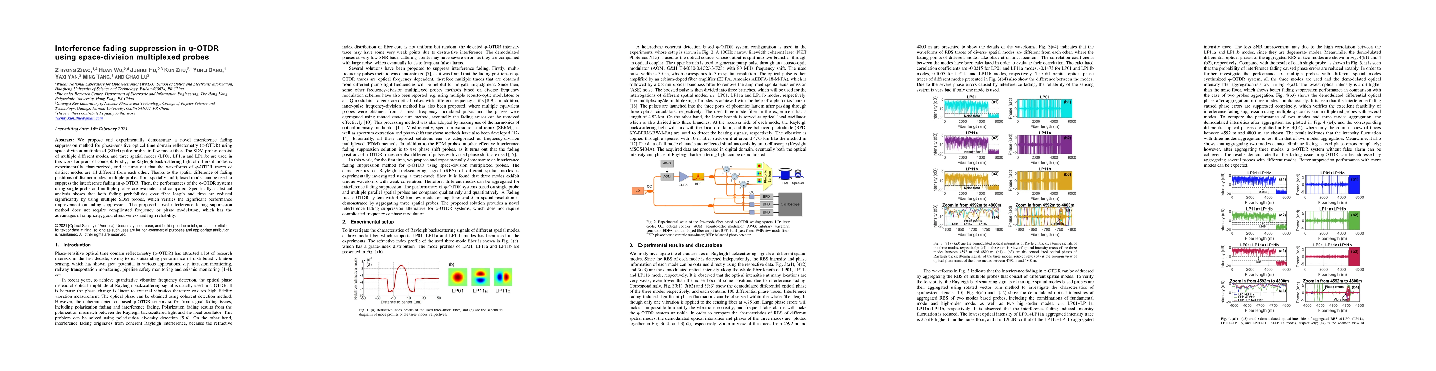 This paper proposes a novel method for interference fading suppression in phase-sensitive optical time domain reflectometry (Phi-OTDR) using space-division multiplexed probes. The method leverages the spatial differences in fading positions of distinct modes to significantly reduce fading probabilities over fiber length and time, demonstrating simplicity, effectiveness, and high reliability.