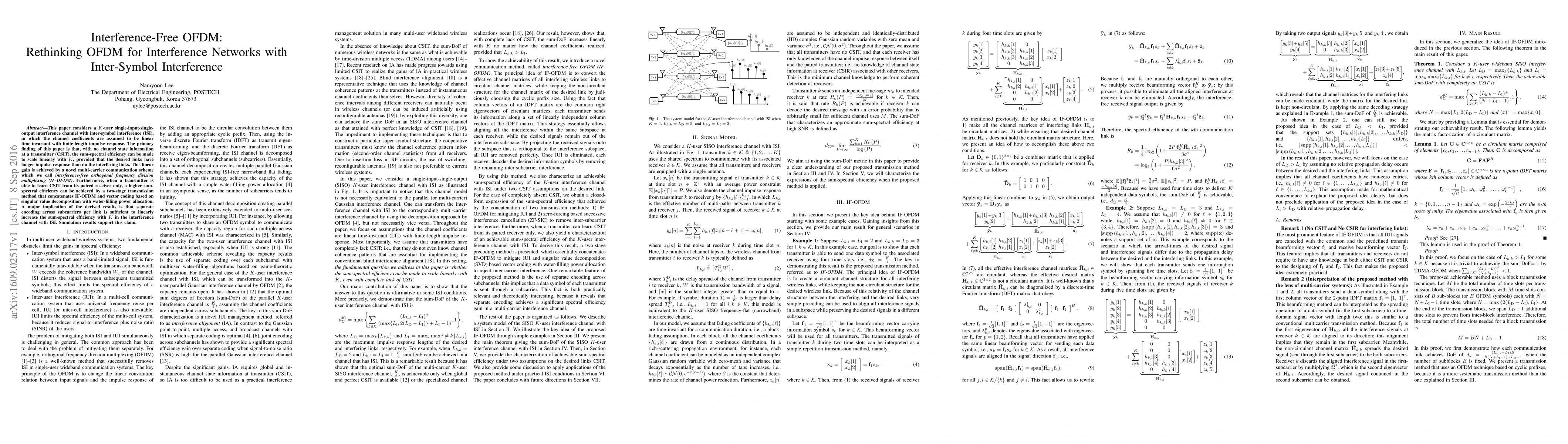 This paper proposes interference-free OFDM (IF-OFDM) to enhance sum-spectral efficiency in $K$-user interference networks with inter-symbol interference, achieving linear scaling with $K$ without channel state information. With limited CSIT, a two-stage method combining IF-OFDM and vector coding further boosts efficiency.
