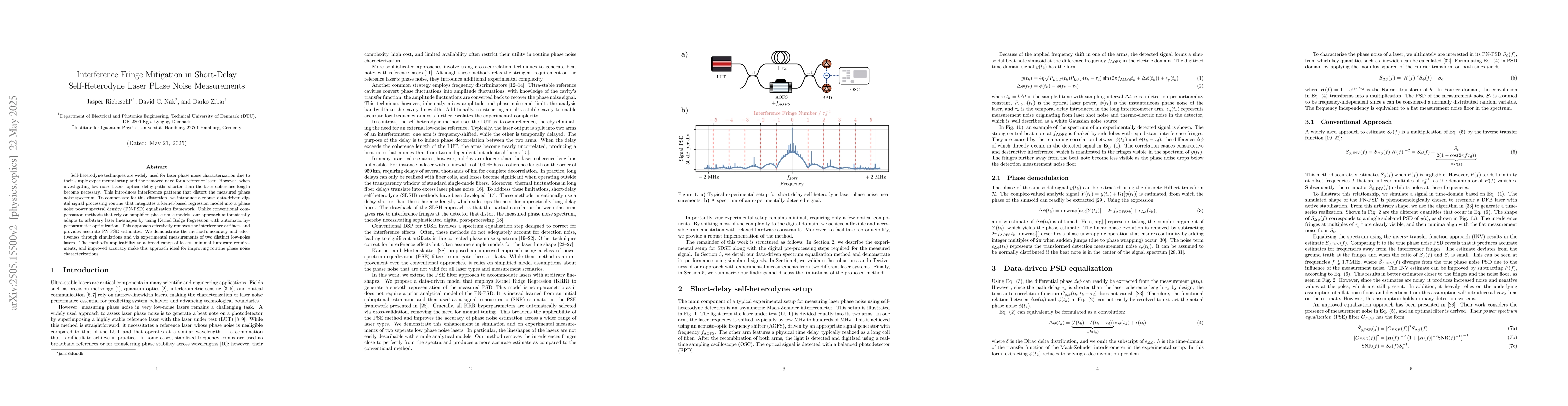 The research introduces a data-driven digital signal processing routine that integrates Kernel Ridge Regression with automatic hyperparameter optimization for interference fringe mitigation in short-delay self-heterodyne laser phase noise measurements.