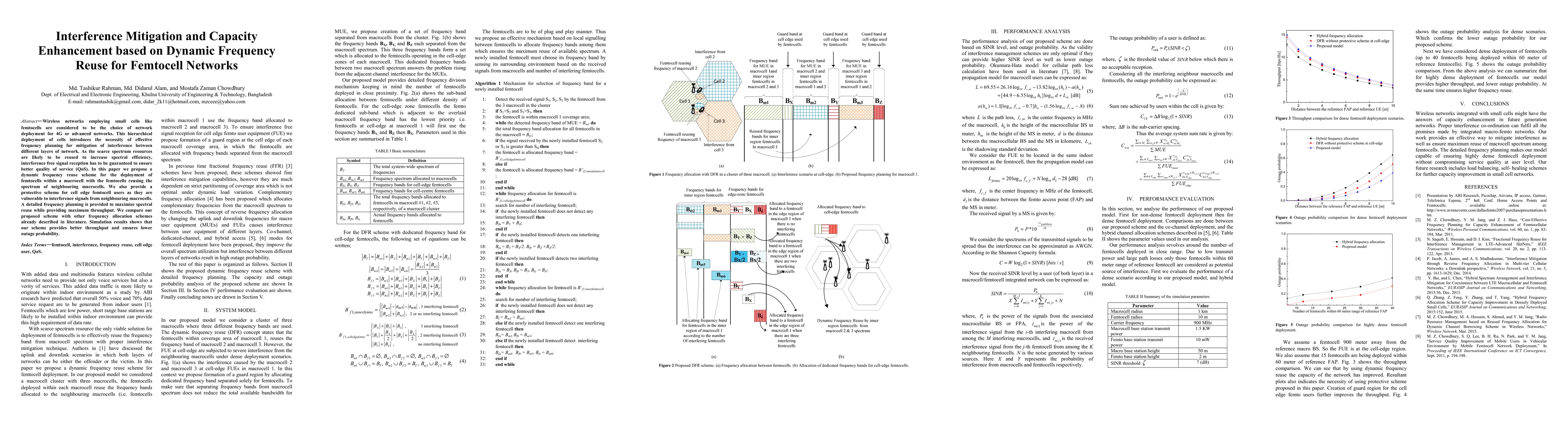 This paper proposes a dynamic frequency reuse scheme to mitigate interference and enhance capacity in femtocell networks by reusing spectrum from neighboring macrocells. The scheme also includes protective measures for cell edge femtocell users, achieving better throughput and lower outage probability compared to existing methods.