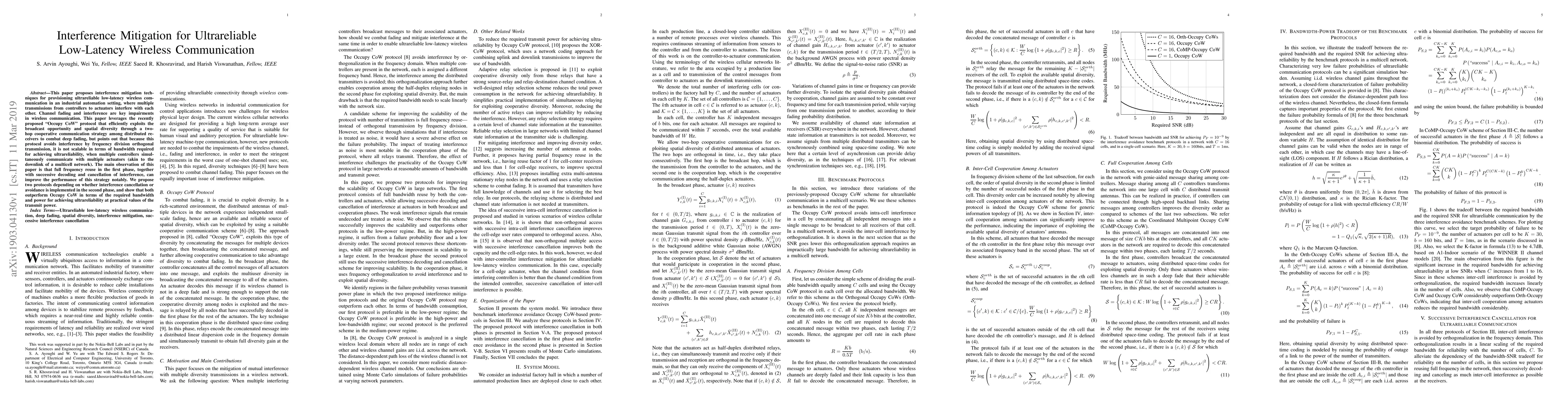 This paper proposes interference mitigation techniques for provisioning ultrareliable low-latency wireless communication in an industrial automation setting, where multiple transmissions from controllers to actuators interfere with each other. Channel fading and interference are key impairments in wireless communication. This paper leverages the recently proposed ``Occupy CoW'' protocol that efficiently exploits the broadcast opportunity and spatial diversity through a two-hop cooperative communication strategy among distributed receivers to combat deep fading, but points out that because this protocol avoids interference by frequency division orthogonal transmission, it is not scalable in terms of bandwidth required for achieving ultrareliability, when multiple controllers simultaneously communicate with multiple actuators (akin to the downlink of a multicell network). The main observation of this paper is that full frequency reuse in the first phase, together with successive decoding and cancellation of interference, can improve the performance of this strategy notably. We propose two protocols depending on whether interference cancellation or avoidance is implemented in the second phase, and show that both outperform Occupy CoW in terms of the required bandwidth and power for achieving ultrareliability at practical values of the transmit power.