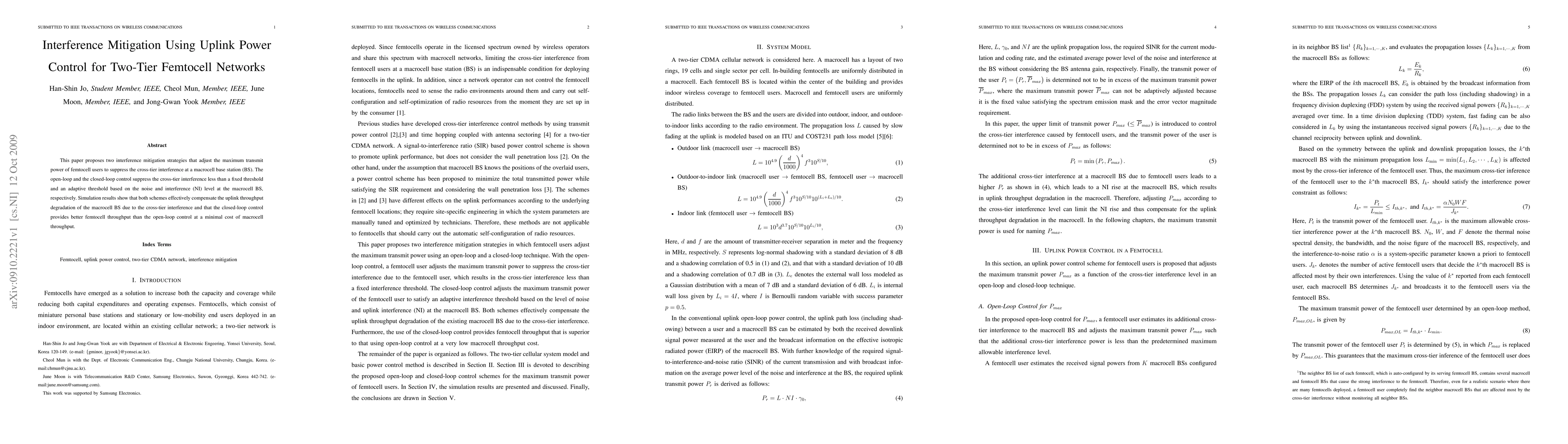This paper proposes two interference mitigation strategies that adjust the maximum transmit power of femtocell users to suppress the cross-tier interference at a macrocell base station (BS). The open-loop and the closed-loop control suppress the cross-tier interference less than a fixed threshold and an adaptive threshold based on the noise and interference (NI) level at the macrocell BS, respectively. Simulation results show that both schemes effectively compensate the uplink throughput degradation of the macrocell BS due to the cross-tier interference and that the closed-loop control provides better femtocell throughput than the open-loop control at a minimal cost of macrocell throughput.