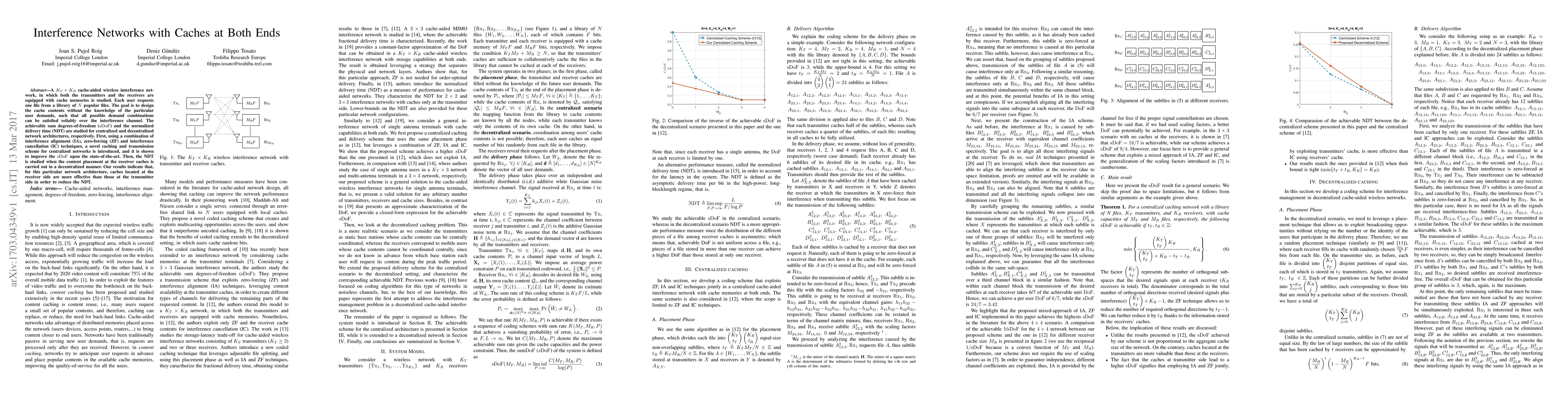 A $K_T \times K_R$ cache-aided wireless interference network, in which both the transmitters and the receivers are equipped with cache memories is studied. Each user requests one file from a library of $N$ popular files. The goal is to design the cache contents without the knowledge of the particular user demands, such that all possible demand combinations can be satisfied reliably over the interference channel. The achievable sum degrees-of-freedom ($\mathrm{sDoF}$) and the normalized delivery time (NDT) are studied for centralized and decentralized network architectures, respectively. First, using a combination of interference alignment (IA), zero-forcing (ZF) and interference cancellation (IC) techniques, a novel caching and transmission scheme for centralized networks is introduced, and it is shown to improve the $\mathrm{sDoF}$ upon the state-of-the-art. Then, the NDT is studied when the content placement at the receiver caches is carried out in a decentralized manner. Our results indicate that, for this particular network architecture, caches located at the receiver side are more effective than those at the transmitter side in order to reduce the NDT.