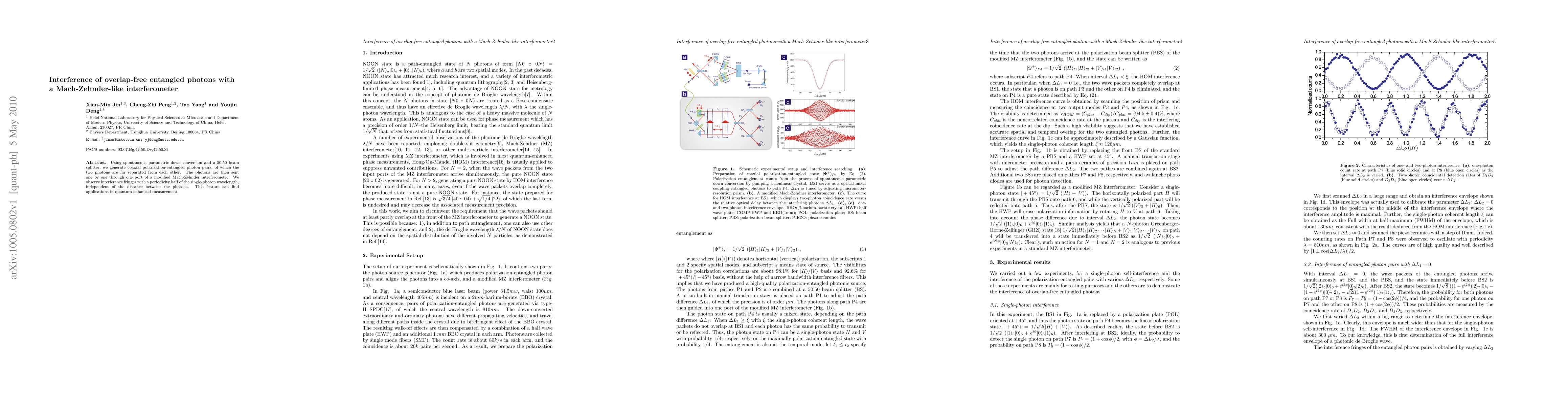 This paper demonstrates the generation of overlap-free entangled photon pairs and their interference in a modified Mach-Zehnder interferometer, showing interference fringes independent of photon separation, which has potential for quantum-enhanced measurement applications.