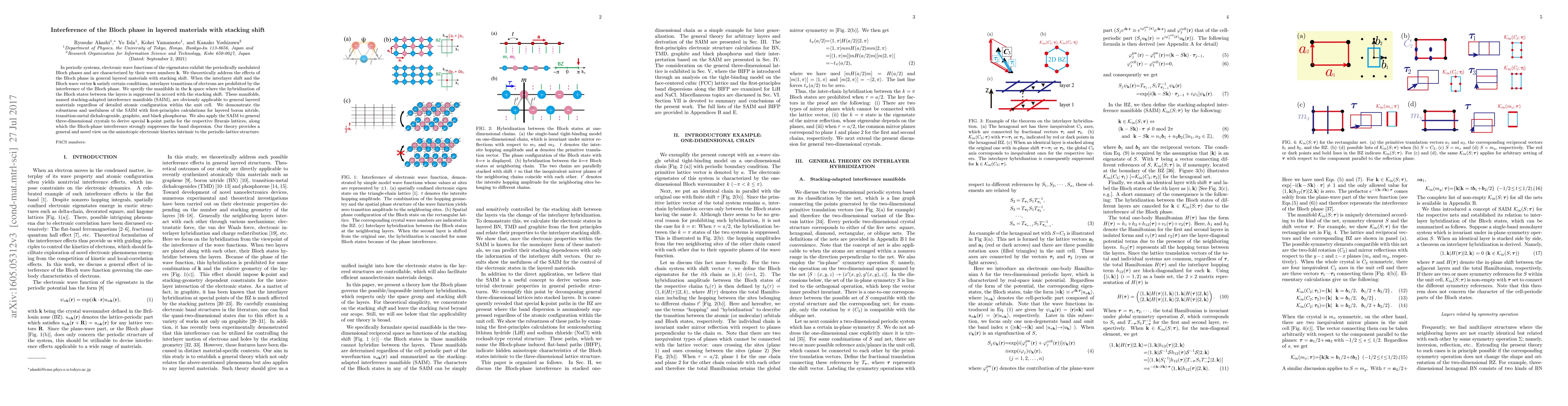 In periodic systems, electronic wave functions of the eigenstates exhibit the periodically modulated Bloch phases and are characterized by their wave numbers ${\bf k}$. We theoretically address the effects of the Bloch phase in general layered materials with stacking shift. When the interlayer shift and the Bloch wave vector ${\bf k}$ satisfy certain conditions, interlayer transitions of electrons are prohibited by the interference of the Bloch phase. We specify the manifolds in the ${\bf k}$ space where the hybridization of the Bloch states between the layers is suppressed in accord with the stacking shift. These manifolds, named stacking-adapted interference manifolds (SAIM), are obviously applicable to general layered materials regardless of detailed atomic configuration within the unit cell. We demonstrate the robustness and usefulness of the SAIM with first-principles calculations for layered boron nitride, transition-metal dichalcogenide, graphite, and black phosphorus. We also apply the SAIM to general three-dimensional crystals to derive special ${\bf k}$-point paths for the respective Bravais lattices, along which the Bloch-phase interference strongly suppresses the band dispersion. Our theory provides a general and novel view on the anisotropic electronic kinetics intrinsic to the periodic-lattice structure.