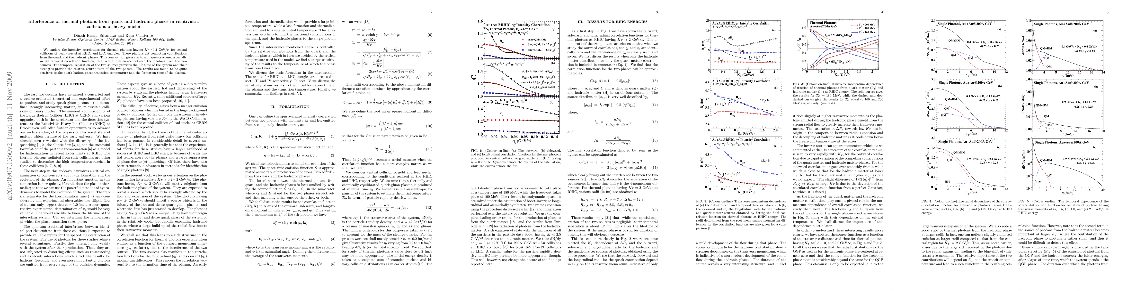 We explore the intensity correlations for thermal photons having $K_T\leq$ 2 GeV/$c$, for central collisions of heavy nuclei at RHIC and LHC energies. These photons get competing contributions from the quark and the hadronic phases. This competition gives rise to a unique structure, especially in the outward correlation function, due to the interference between the photons from the two sources. The temporal separation of the two sources provides the life time of the system and their strengths provide the relative contribution of the two phases. The results are found to be quite sensitive to the quark-hadron phase transition temperature and the formation time of the plasma.