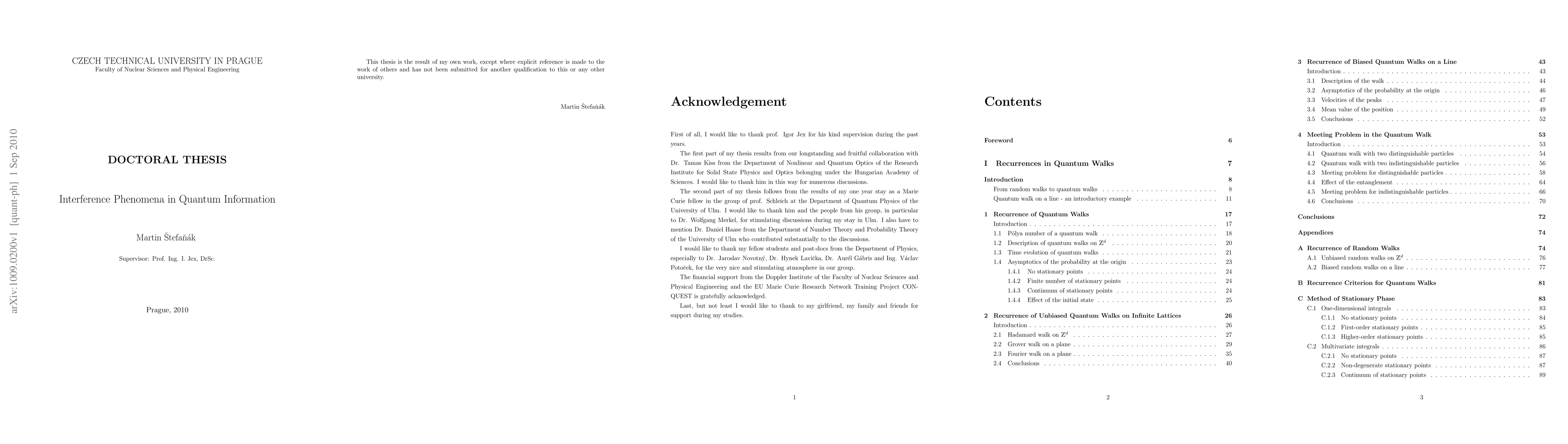 One of the key features of quantum mechanics is the interference of probability amplitudes. The reason for the appearance of interference is mathematically very simple. It is the linear structure of the Hilbert space which is used for the description of quantum systems. In terms of physics we usually talk about the superposition principle valid for individual and composed quantum objects. So, while the source of interference is understandable it leads in fact to many counter-intuitive physical phenomena which puzzle physicists for almost hundred years. The present thesis studies interference in two seemingly disjoint fields of physics. However, both have strong links to quantum information processing and hence are related. In the first part we study the intriguing properties of quantum walks. In the second part we analyze a sophisticated application of wave packet dynamics in atoms and molecules for factorization of integers. The main body of the thesis is based on the original contributions listed separately at the end of the thesis. The more technical aspects and brief summaries of used methods are left for appendices.