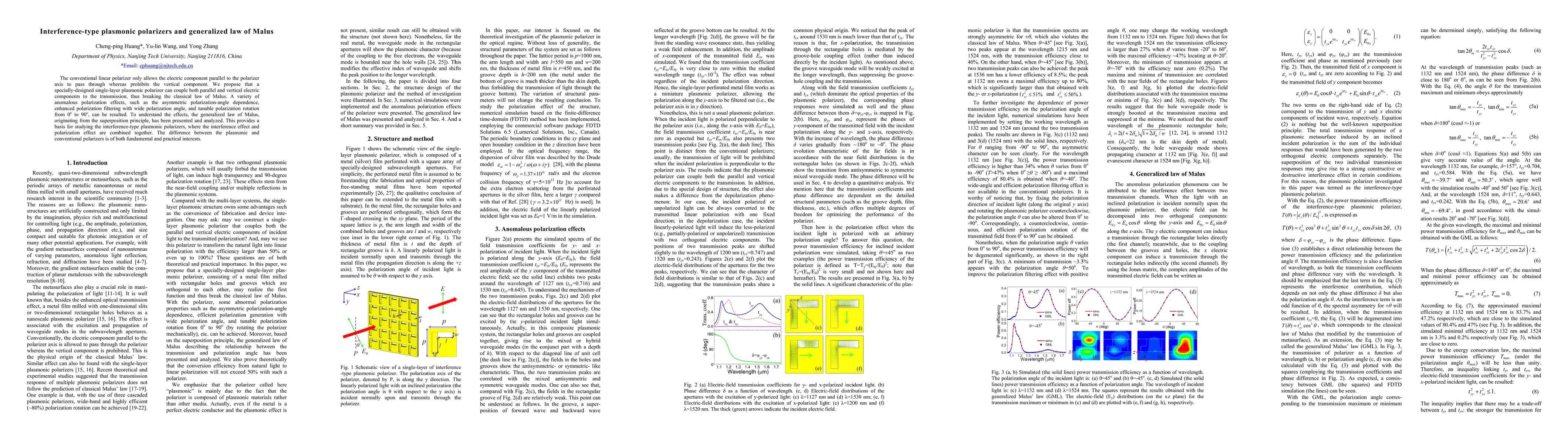The conventional linear polarizer only allows the electric component parallel to the polarizer axis to pass through whereas prohibits the vertical component. We propose that a specially-designed single-layer plasmonic polarizer can couple both parallel and vertical electric components to the transmission, thus breaking the classical law of Malus. A variety of anomalous polarization effects, such as the asymmetric polarization-angle dependence, enhanced polarization filtering with wide polarization angle, and tunable polarization rotation from 0o to 90o, can be resulted. To understand the effects, the generalized law of Malus,originating from the superposition principle, has been presented and analyzed. This provides a basis for studying the interference-type plasmonic polarizers, where the interference effect and polarization effect are combined together. The difference between the plasmonic and conventional polarizers is of both fundamental and practical interests.