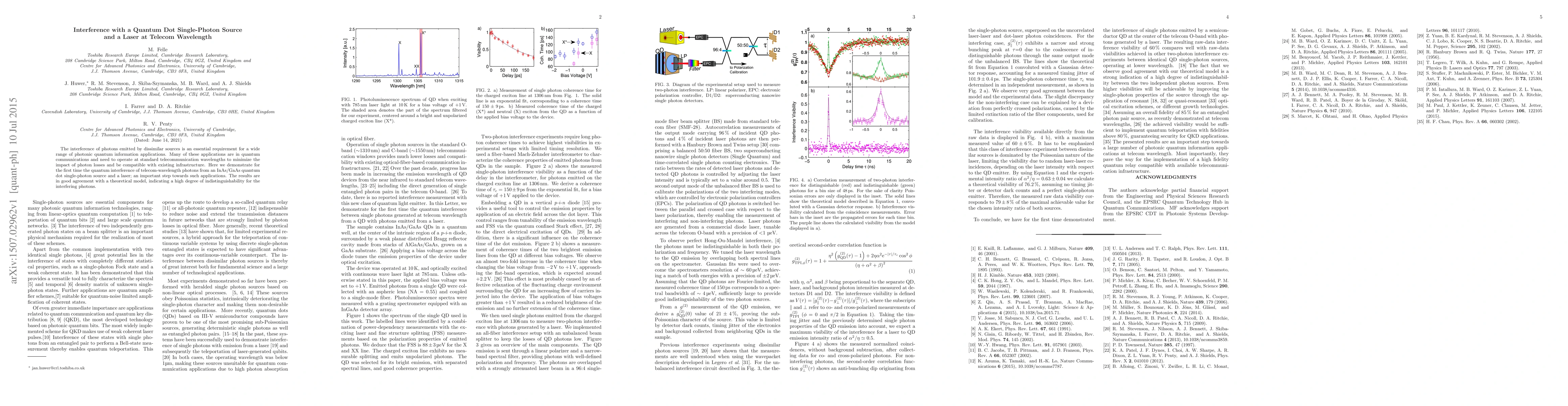 This study demonstrates the first quantum interference of telecom-wavelength photons from a quantum dot single-photon source and a laser, a crucial step for quantum communication applications. The findings align well with theoretical predictions, confirming high photon indistinguishability.