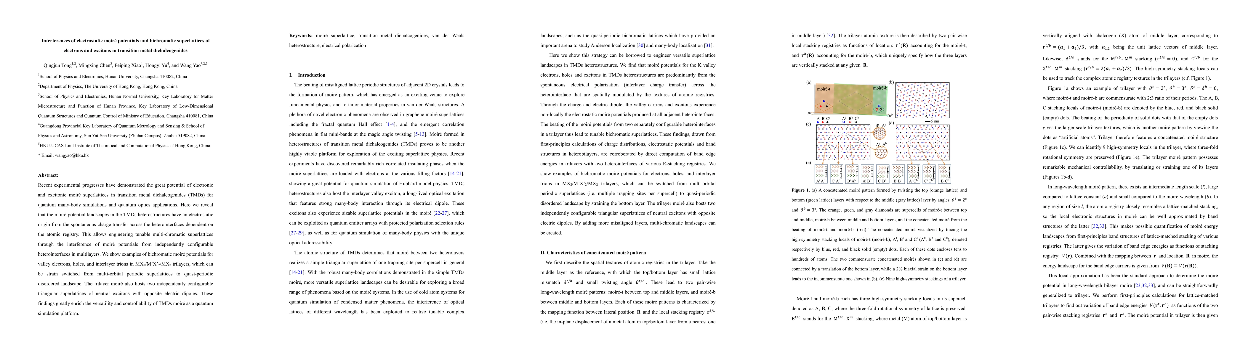 This paper explores how electrostatic moiré potentials in transition metal dichalcogenides (TMDs) heterostructures, arising from charge transfer across heterointerfaces, enable the engineering of tunable bichromatic superlattices. It demonstrates the interference of moiré potentials in trilayer TMDs, leading to versatile control over electronic and excitonic states, thus enhancing TMDs' potential for quantum simulation and optics applications.