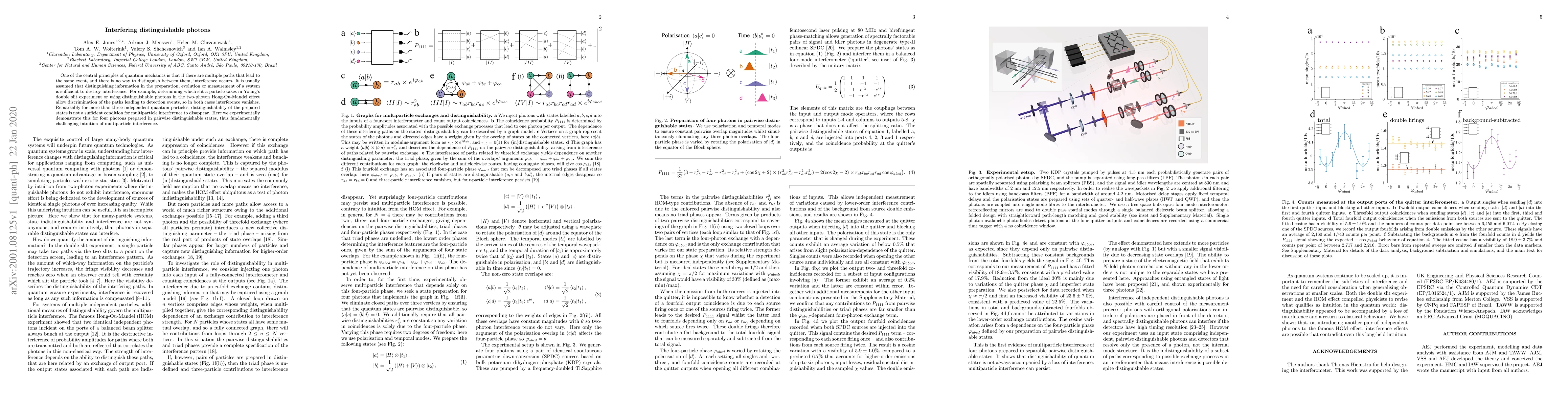 One of the central principles of quantum mechanics is that if there are multiple paths that lead to the same event, and there is no way to distinguish between them, interference occurs. It is usually assumed that distinguishing information in the preparation, evolution or measurement of a system is sufficient to destroy interference. For example, determining which slit a particle takes in Young's double slit experiment or using distinguishable photons in the two-photon Hong-Ou-Mandel effect allow discrimination of the paths leading to detection events, so in both cases interference vanishes. Remarkably for more than three independent quantum particles, distinguishability of the prepared states is not a sufficient condition for multiparticle interference to disappear. Here we experimentally demonstrate this for four photons prepared in pairwise distinguishable states, thus fundamentally challenging intuition of multiparticle interference.