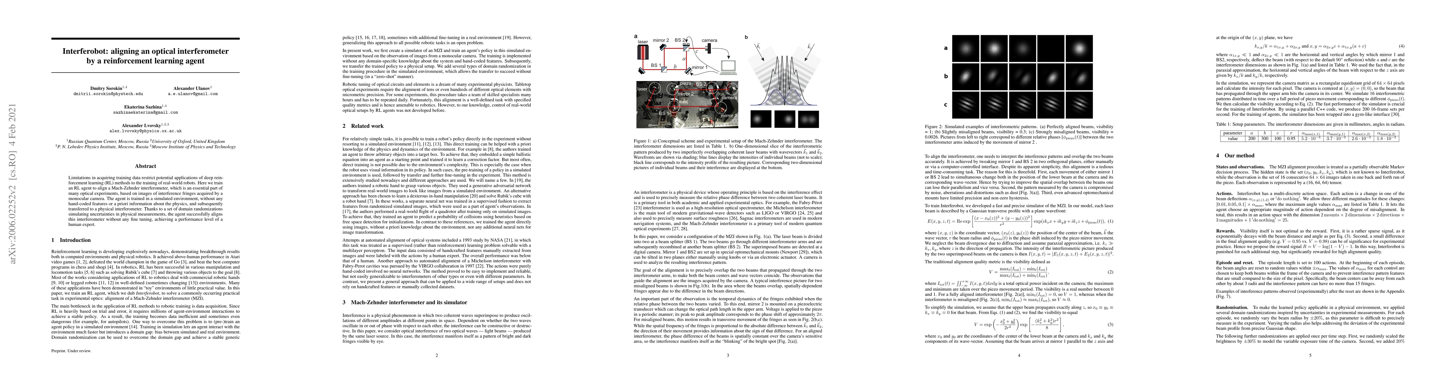 Researchers trained a reinforcement learning agent to align an optical interferometer using images of interference fringes, achieving performance levels comparable to human experts without fine-tuning.