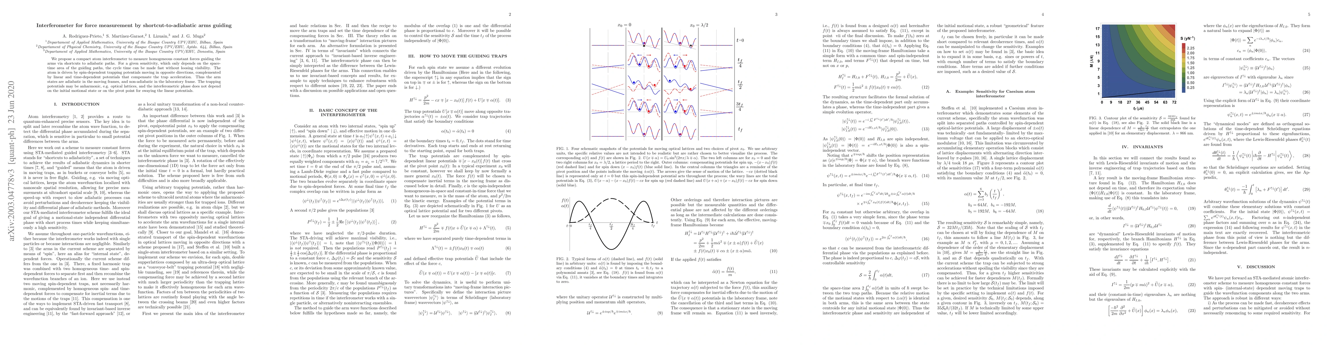 Researchers propose a compact atom interferometer to measure forces using shortcut paths, allowing for fast cycle times without losing visibility. The device uses spin-dependent trapping potentials that compensate for trap acceleration, enabling accurate force measurements with minimal dependence on initial state or pivot point.