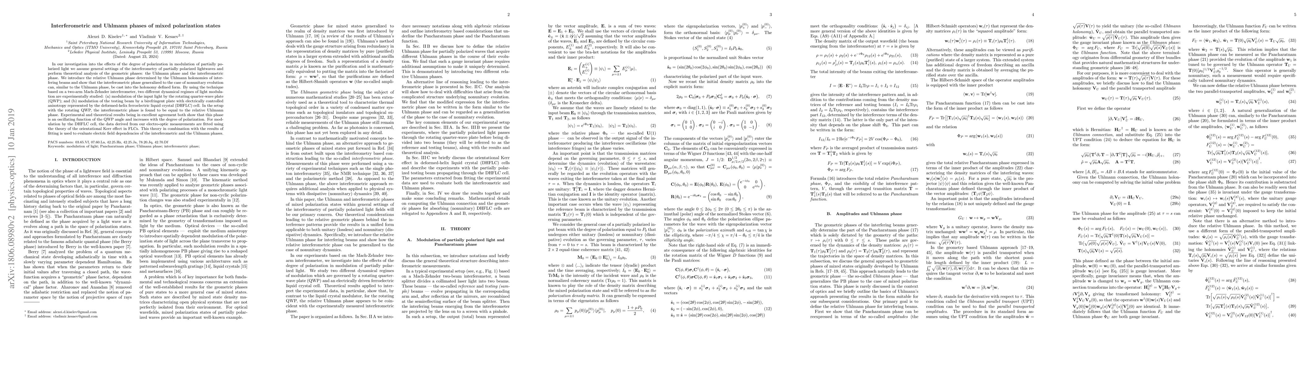 This paper investigates the interferometric and Uhlmann phases in partially polarized light, demonstrating that the interferometric phase can be expressed in a holonomy form similar to the Uhlmann phase. Experimental results using a Mach-Zehnder interferometer show that the interferometric phase equals the relative Uhlmann phase for modulation by a rotating quarter-wave plate, while modulation by a deformed-helix ferroelectric liquid crystal cell is analyzed using the orientational Kerr effect theory.