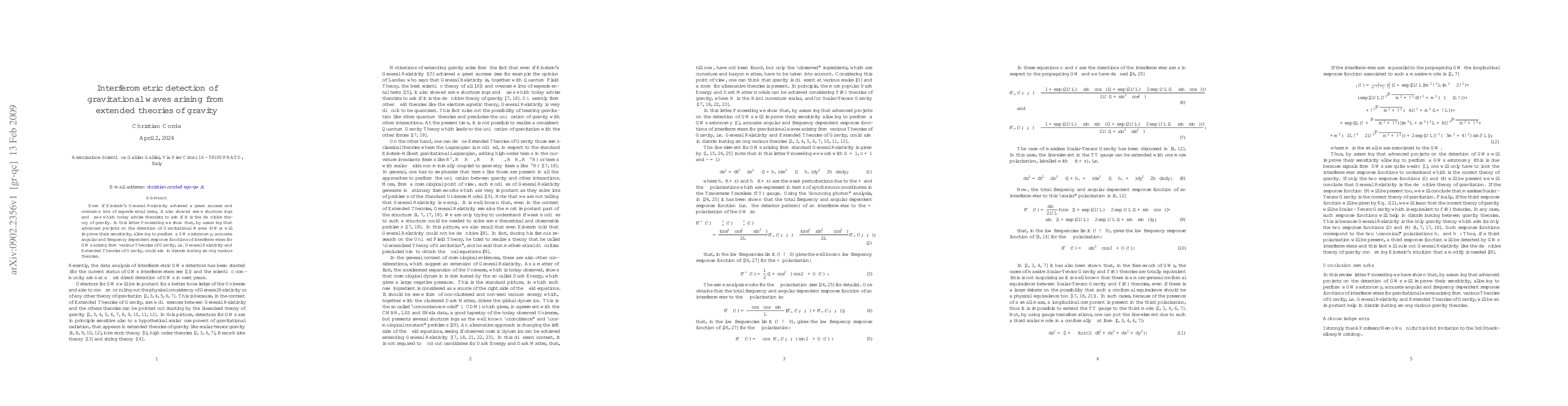 This paper discusses how improved interferometric detection of gravitational waves could help distinguish between General Relativity and extended theories of gravity, leveraging advancements in GW sensitivity to perform gravitational wave astronomy. The study aims to develop angular and frequency-dependent response functions for interferometers to discriminate among competing gravitational theories.