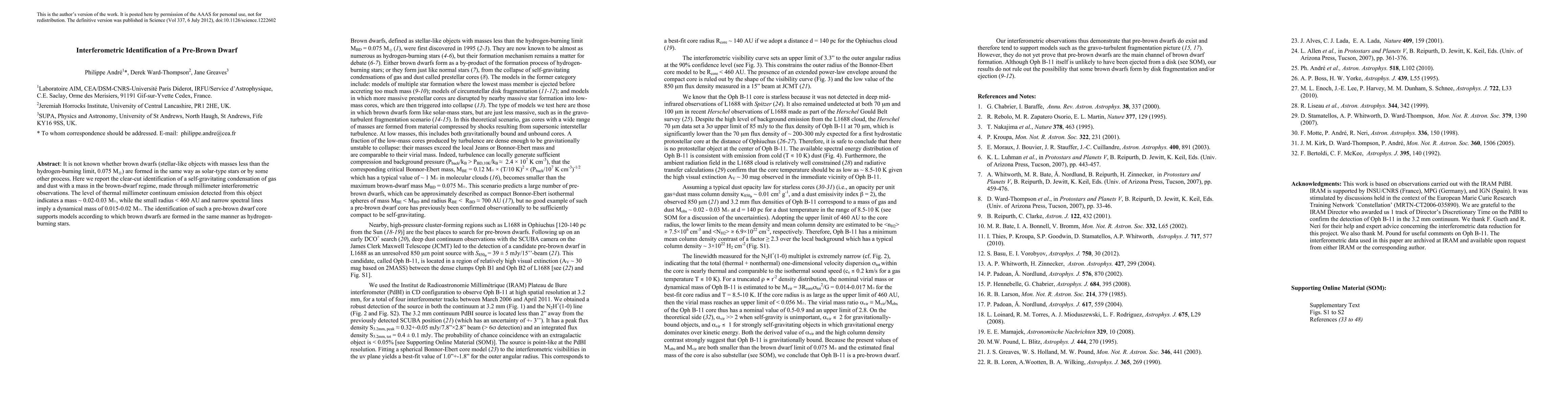 The clear identification of a pre-brown dwarf core using interferometric observations, providing insights into the formation process of brown dwarfs.