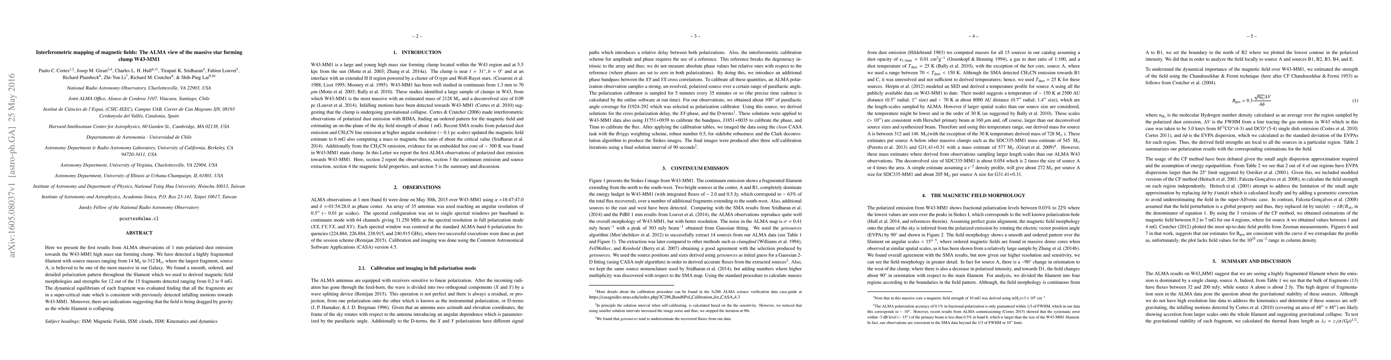 This study uses ALMA to map magnetic fields in the W43-MM1 high-mass star-forming region, revealing a highly fragmented filament with masses up to 312Msun. The analysis shows a detailed polarization pattern indicating magnetic field morphologies and strengths ranging from 0.2 to 9 mG, suggesting the filament is collapsing under gravitational influence.