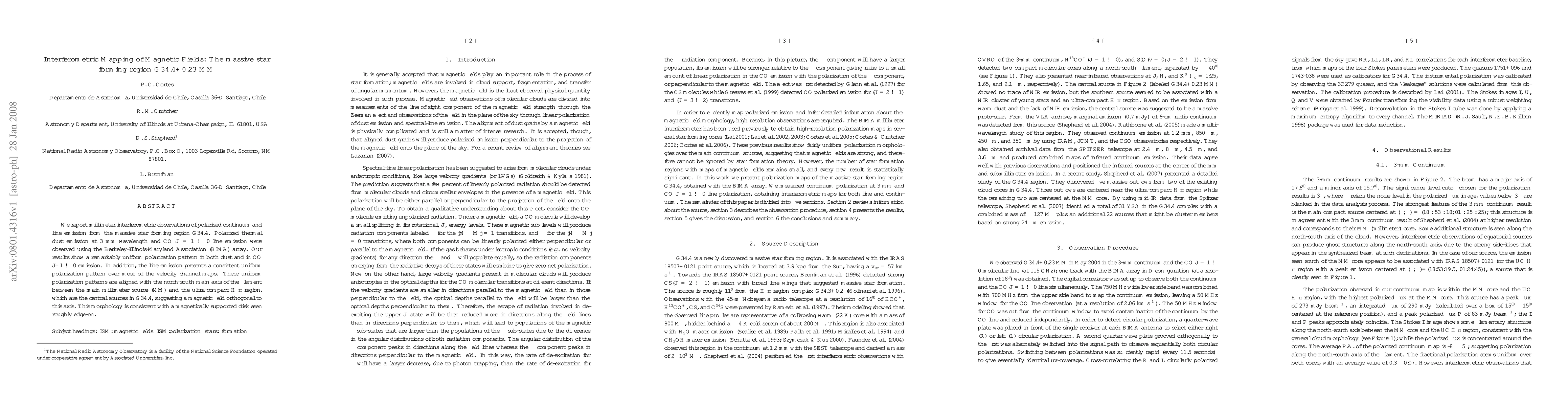 We report millimeter interferometric observations of polarized continuum and line emission from the massive star forming region G34.4. Polarized thermal dust emission at 3 mm wavelength and CO $J=1 \to 0$ line emission were observed using the Berkeley-Illinois-Maryland Association (BIMA) array. Our results show a remarkably uniform polarization pattern in both dust and in CO J=$1 \to 0$ emission. In addition, the line emission presents a consistent uniform polarization pattern over most of the velocity channel maps. These uniform polarization patterns are aligned with the north-south main axis of the filament between the main millimeter source (MM) and the ultra-compact H {\scriptsize II} region, which are the central sources in G34.4, suggesting a magnetic field orthogonal to this axis. This morphology is consistent with a magnetically supported disk seen roughly edge-on.