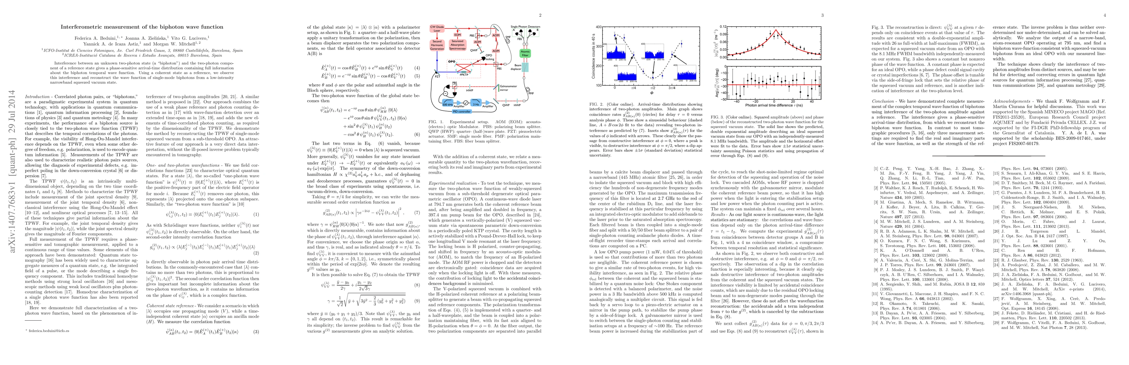 This paper details an interferometric method to measure the biphoton wave function by observing interference between a biphoton and a coherent reference state, allowing reconstruction of the biphoton's temporal wave function from a squeezed vacuum source.