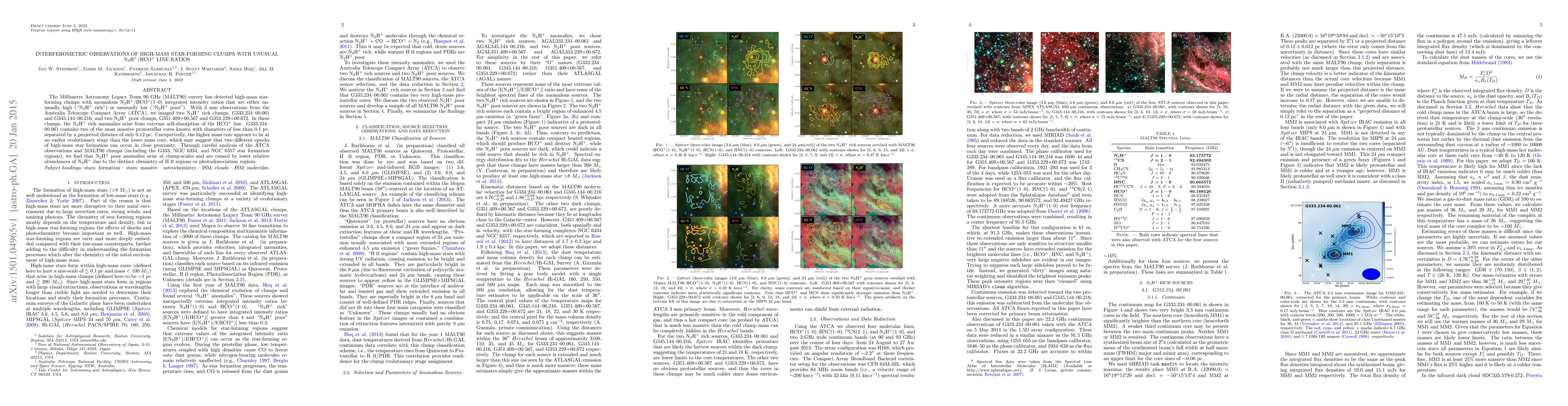 The Millimetre Astronomy Legacy Team 90 GHz (MALT90) survey has detected high-mass star-forming clumps with anomalous N$_2$H$^+$/HCO$^+$(1-0) integrated intensity ratios that are either unusually high ("N$_2$H$^+$ rich") or unusually low ("N$_2$H$^+$ poor"). With 3 mm observations from the Australia Telescope Compact Array (ATCA), we imaged two N$_2$H$^+$ rich clumps, G333.234-00.061 and G345.144-00.216, and two N$_2$H$^+$ poor clumps, G351.409+00.567 and G353.229+00.672. In these clumps, the N$_2$H$^+$ rich anomalies arise from extreme self-absorption of the HCO$^+$ line. G333.234-00.061 contains two of the most massive protostellar cores known with diameters of less than 0.1 pc, separated by a projected distance of only 0.12 pc. Unexpectedly, the higher mass core appears to be at an earlier evolutionary stage than the lower mass core, which may suggest that two different epochs of high-mass star formation can occur in close proximity. Through careful analysis of the ATCA observations and MALT90 clumps (including the G333, NGC 6334, and NGC 6357 star formation regions), we find that N$_2$H$^+$ poor anomalies arise at clump-scales and are caused by lower relative abundances of N$_2$H$^+$ due to the distinct chemistry of H II regions or photodissociation regions.