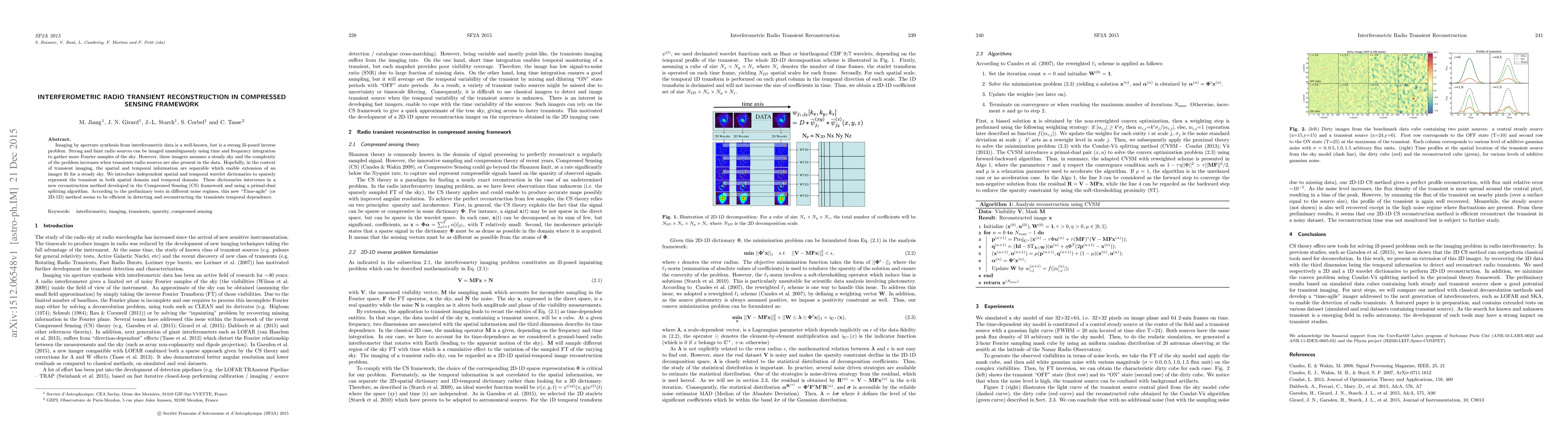 Imaging by aperture synthesis from interferometric data is a well-known, but is a strong ill-posed inverse problem. Strong and faint radio sources can be imaged unambiguously using time and frequency integration to gather more Fourier samples of the sky. However, these imagers assumes a steady sky and the complexity of the problem increases when transients radio sources are also present in the data. Hopefully, in the context of transient imaging, the spatial and temporal information are separable which enable extension of an imager fit for a steady sky. We introduce independent spatial and temporal wavelet dictionaries to sparsely represent the transient in both spatial domain and temporal domain. These dictionaries intervenes in a new reconstruction method developed in the Compressed Sensing (CS) framework and using a primal-dual splitting algorithm. According to the preliminary tests in different noise regimes, this new "Time-agile" (or 2D-1D) method seems to be efficient in detecting and reconstructing the transients temporal dependence.