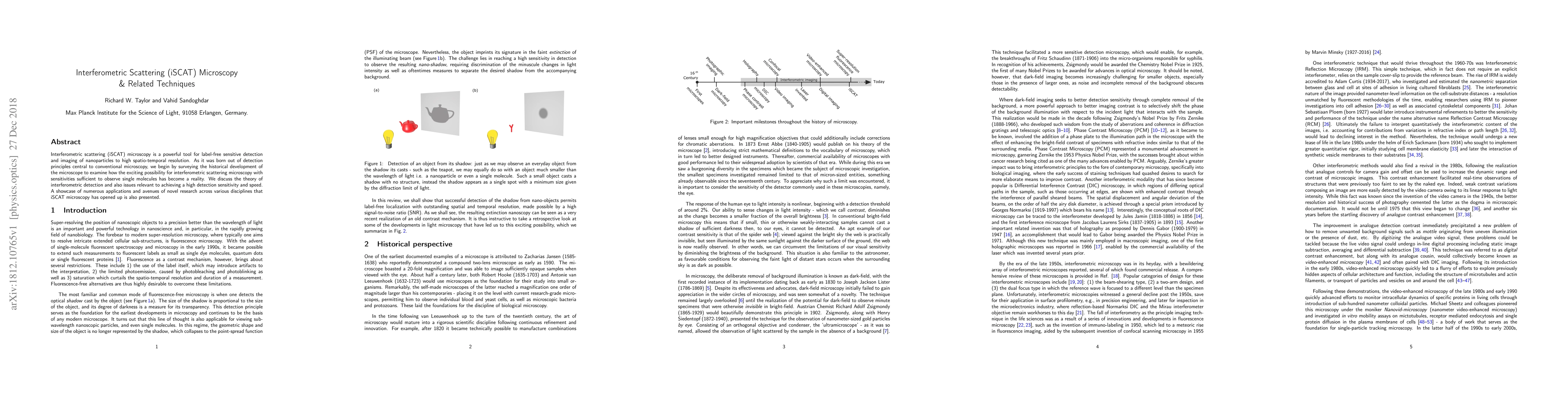 Interferometric scattering (iSCAT) microscopy enables label-free detection and imaging of nanoparticles with high resolution. The paper reviews its historical development and theoretical principles, highlighting its applications and potential for future research across diverse fields.