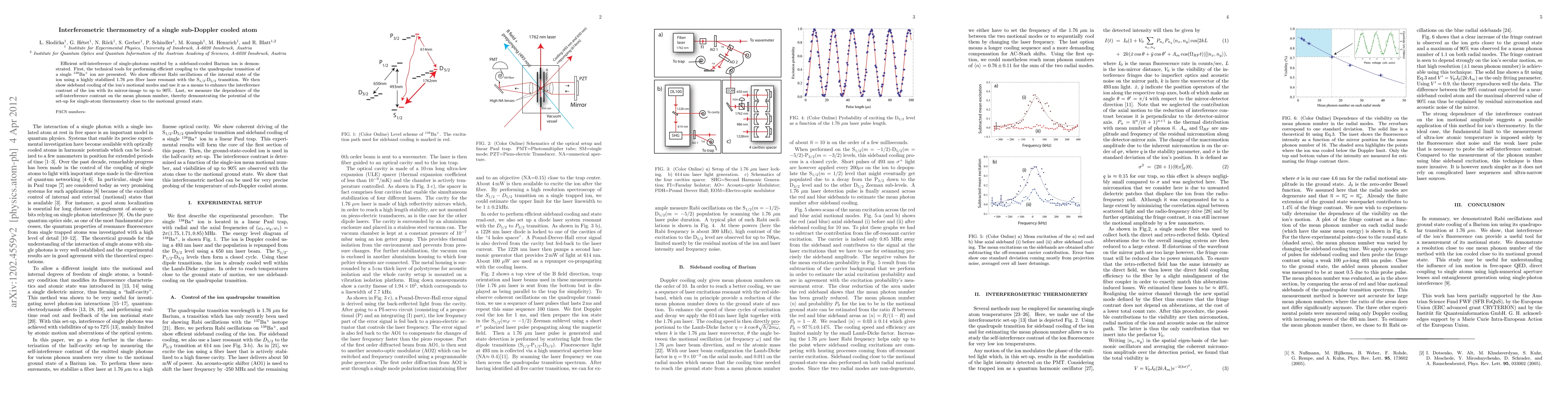 Efficient self-interference of single-photons emitted by a sideband-cooled Barium ion is demonstrated. First, the technical tools for performing efficient coupling to the quadrupolar transition of a single $^{138}$Ba$^{+}$ ion are presented. We show efficient Rabi oscillations of the internal state of the ion using a highly stabilized 1.76 $\mu m$ fiber laser resonant with the S$_{1/2}$-D$_{5/2}$ transition. We then show sideband cooling of the ion's motional modes and use it as a means to enhance the interference contrast of the ion with its mirror-image to up to 90%. Last, we measure the dependence of the self-interference contrast on the mean phonon number, thereby demonstrating the potential of the set-up for single-atom thermometry close to the motional ground state.