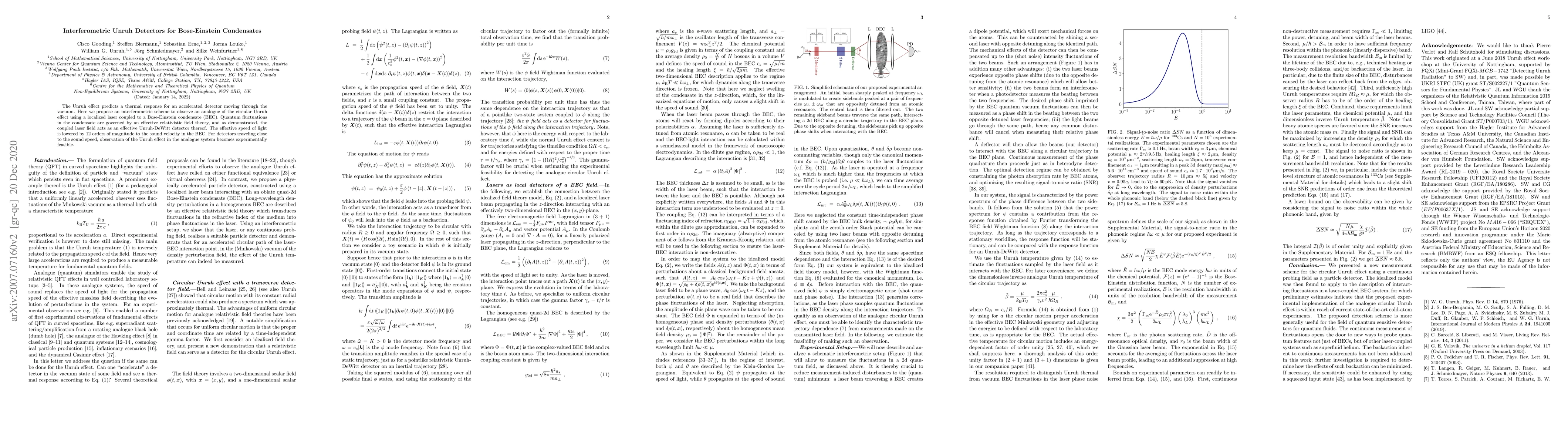 The Unruh effect predicts a thermal response for an accelerated detector moving through the vacuum. Here we propose an interferometric scheme to observe an analogue of the circular Unruh effect using a localized laser coupled to a Bose-Einstein condensate (BEC). Quantum fluctuations in the condensate are governed by an effective relativistic field theory, and as demonstrated, the coupled laser field acts as an effective Unruh-DeWitt detector thereof. The effective speed of light is lowered by 12 orders of magnitude to the sound velocity in the BEC. For detectors traveling close to the sound speed, observation of the Unruh effect in the analogue system becomes experimentally feasible.