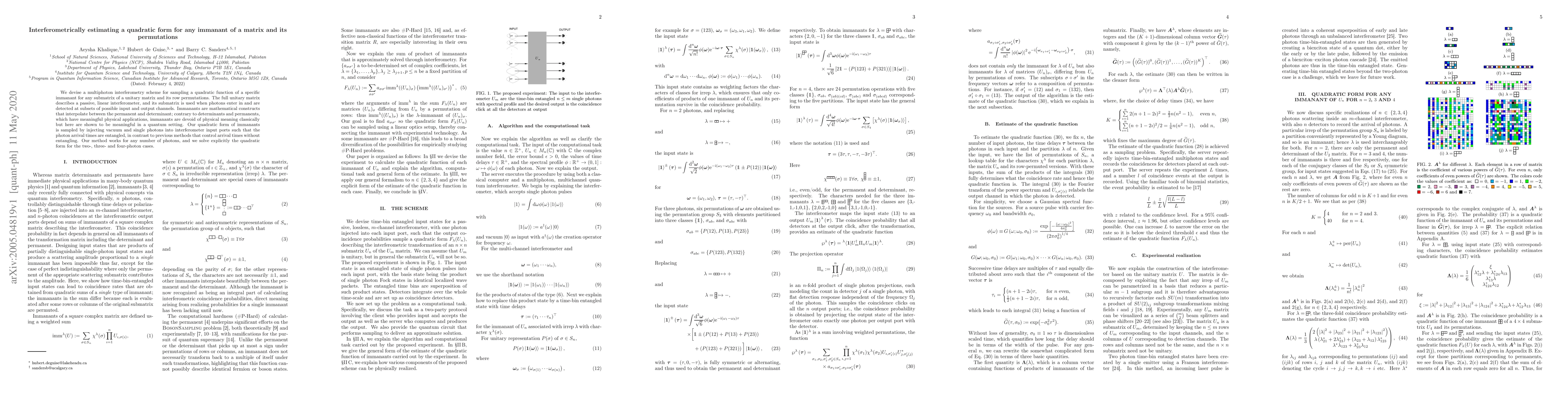 Researchers developed a method to estimate quadratic forms of immanants using multiphoton interferometry, enabling sampling of mathematical constructs with physical significance in quantum settings.