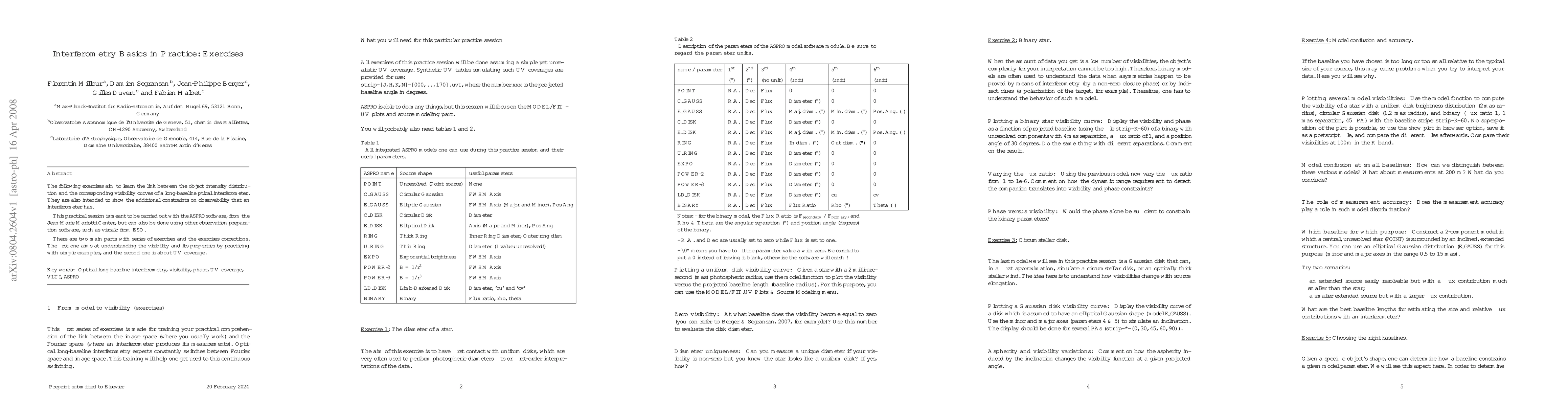 The paper presents a hands-on approach to understanding interferometry basics, providing exercises and solutions that enhance practical skills in analyzing visibility curves and UV coverage in optical long-baseline interferometry.