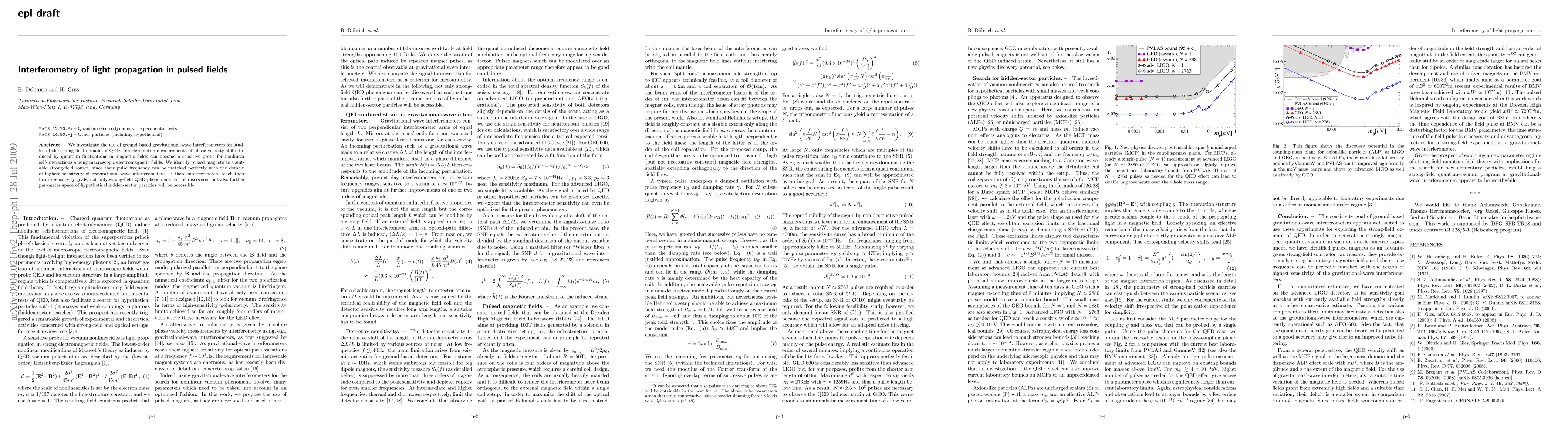 We investigate the use of ground-based gravitational-wave interferometers for studies of the strong-field domain of QED. Interferometric measurements of phase velocity shifts induced by quantum fluctuations in magnetic fields can become a sensitive probe for nonlinear self-interactions among macroscopic electromagnetic fields. We identify pulsed magnets as a suitable strong-field source, since their pulse frequency can be matched perfectly with the domain of highest sensitivity of gravitational-wave interferometers. If these interferometers reach their future sensitivity goals, not only strong-field QED phenomena can be discovered but also further parameter space of hypothetical hidden-sector particles will be accessible.
