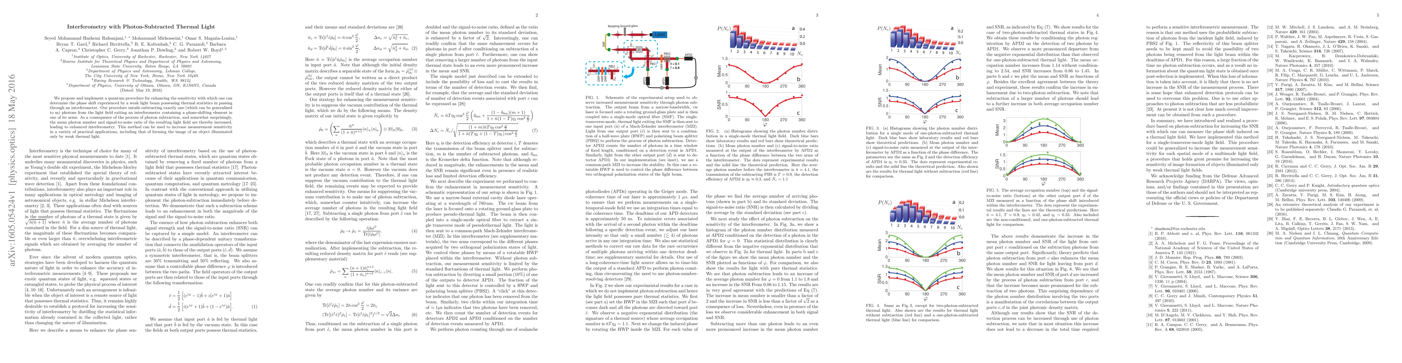 The research proposes and implements a quantum procedure for enhancing phase shift sensitivity in thermal light interferometry by subtracting photons from the light field exiting an interferometer.