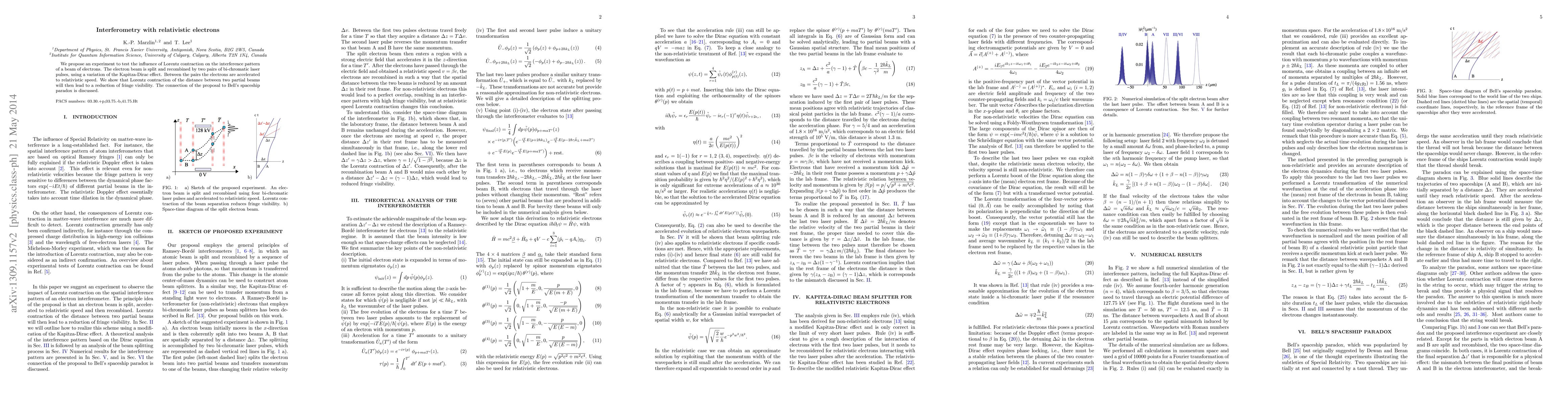 We propose an experiment to test the influence of Lorentz contraction on the interference pattern of a beam of electrons. The electron beam is split and recombined by two pairs of bi-chromatic laser pulses, using a variation of the Kapitza-Dirac effect. Between the pairs the electrons are accelerated to relativistic speed. We show that Lorentz contraction of the distance between two partial beams will then lead to a reduction of fringe visibility. The connection of the proposal to Bell's spaceship paradox is discussed.