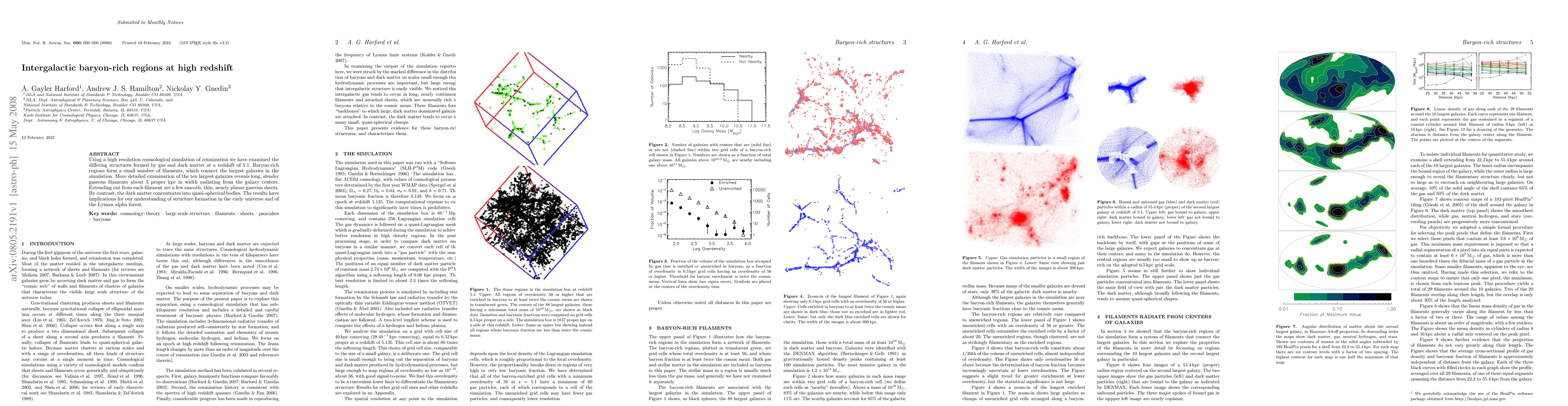 Researchers used a high-resolution simulation to study galaxy formation at high redshifts, finding that gas and dark matter form different structures around massive galaxies, with gaseous filaments radiating from the galaxy centers.