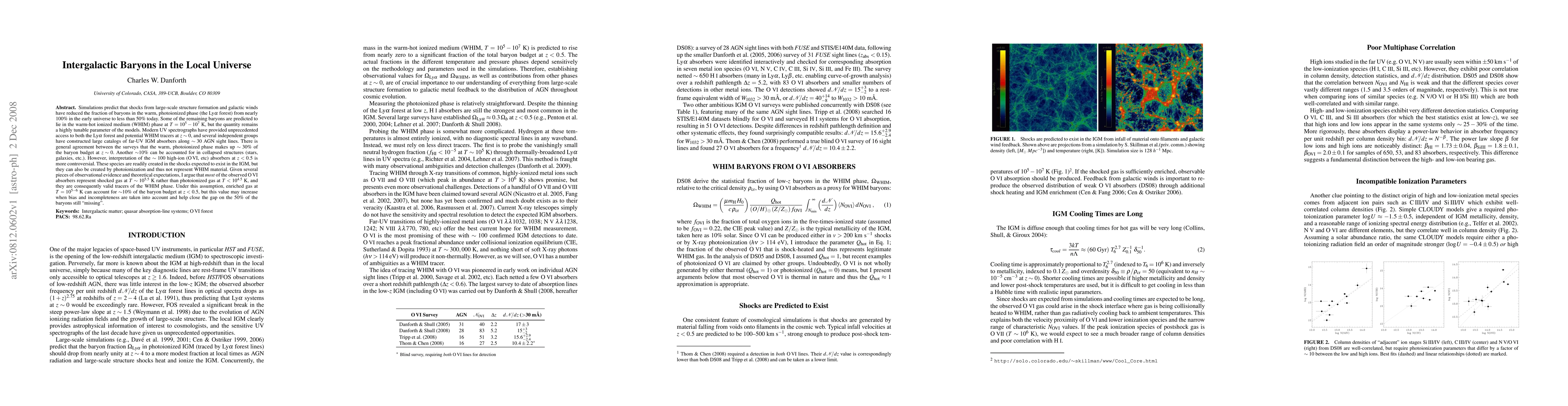 Simulations predict that shocks from large-scale structure formation and galactic winds have reduced the fraction of baryons in the warm, photoionized phase (the Lya forest) from nearly 100% in the early universe to less than 50% today. Some of the remaining baryons are predicted to lie in the warm-hot ionized medium (WHIM) phase at T=10^5-10^7 K, but the quantity remains a highly tunable parameter of the models. Modern UV spectrographs have provided unprecedented access to both the Lya forest and potential WHIM tracers at z~0, and several independent groups have constructed large catalogs of far-UV IGM absorbers along ~30 AGN sight lines. There is general agreement between the surveys that the warm, photoionized phase makes up ~30% of the baryon budget at z~0. Another ~10% can be accounted for in collapsed structures (stars, galaxies, etc.). However, interpretation of the ~100 high-ion (OVI, etc) absorbers at z<0.5 is more controversial. These species are readily created in the shocks expected to exist in the IGM, but they can also be created by photoionization and thus not represent WHIM material. Given several pieces of observational evidence and theoretical expectations, I argue that most of the observed OVI absorbers represent shocked gas at T~300,000 K rather than photoionized gas at T<30,000 K, and they are consequently valid tracers of the WHIM phase. Under this assumption, enriched gas at T=10^5-10^6 K can account for ~10% of the baryon budget at z<0.5, but this value may increase when bias and incompleteness are taken into account and help close the gap on the 50% of the baryons still "missing".