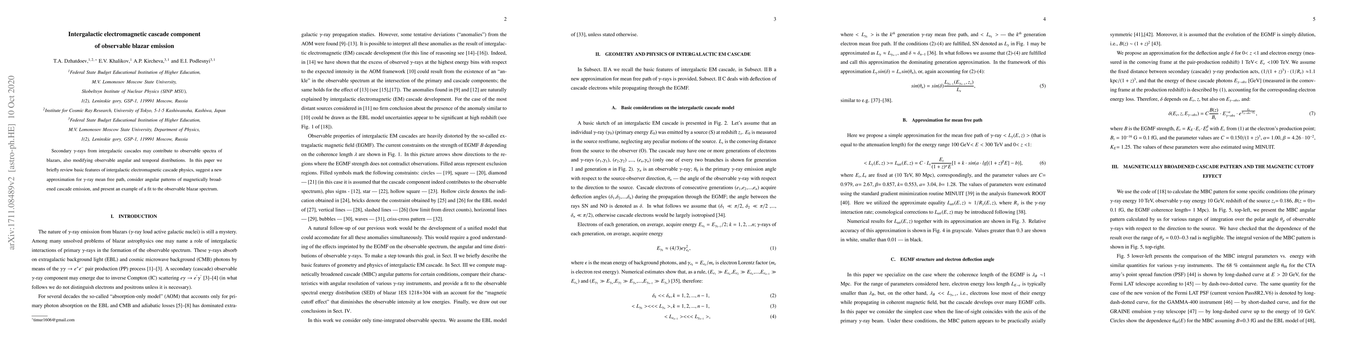 Secondary {\gamma}-rays from intergalactic cascades may contribute to observable spectra of blazars, also modifying observable angular and temporal distributions. In this paper we briefly review basic features of intergalactic electromagnetic cascade physics, suggest a new approximation for {\gamma}-ray mean free path, consider angular patterns of magnetically broadened cascade emission, and present an example of a fit to the observable blazar spectrum.